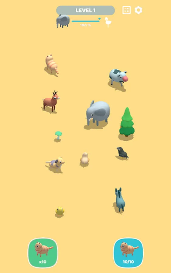 Match cute animals one-on-one to make a variety of new animals, including cats, dogs, elephants, and flamingos!