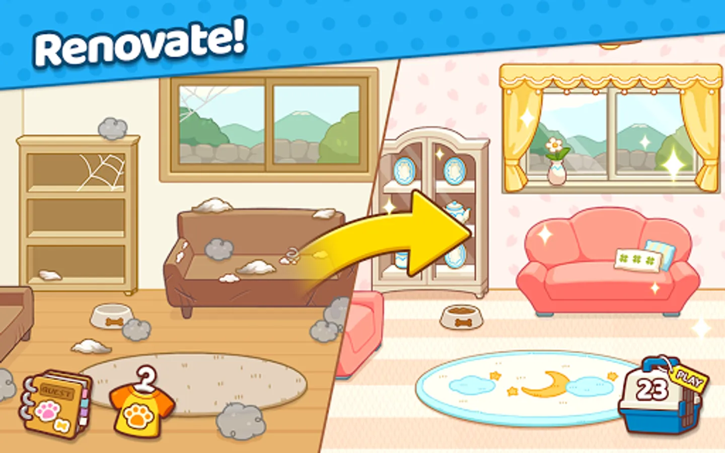 By clearing the puzzles, you can accompany Bailey, Bandit, and the kitties on their wild stories throughout the days!