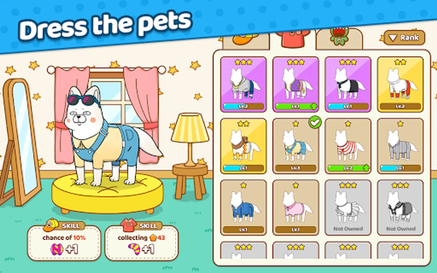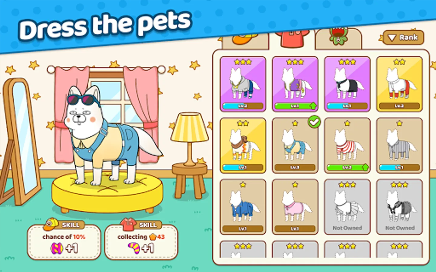 Dress the dogs and cats in various costumes and use their skills to help you win the game!