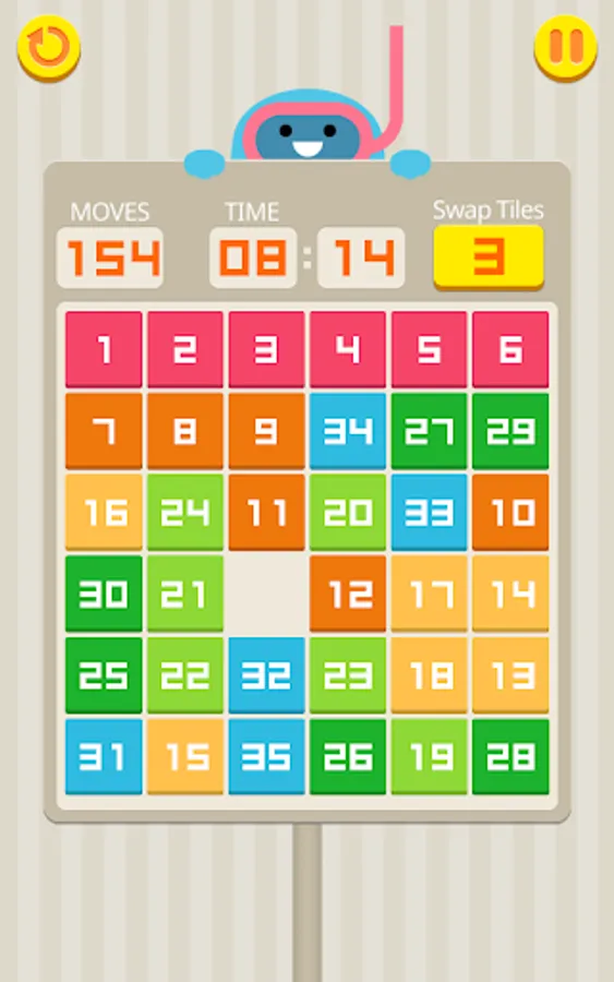 Slide the NUMBER is a sliding puzzle based on 15 puzzle that consists of a numbered tiles in random order with one tile missing.