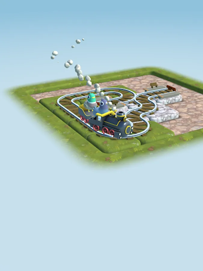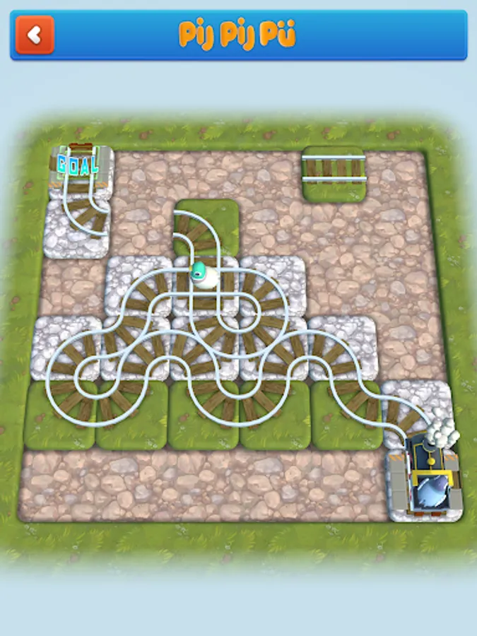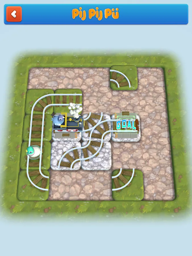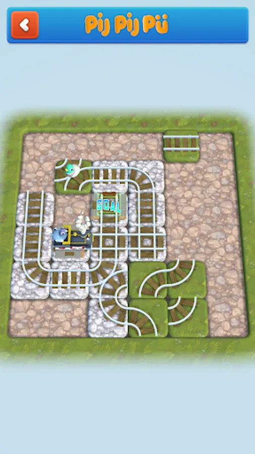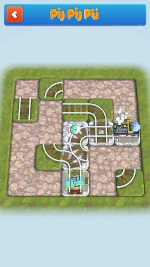 Slide the track tiles around to solve the puzzle and complete the train track! Help your Pij drive the train and pick up the passenger!