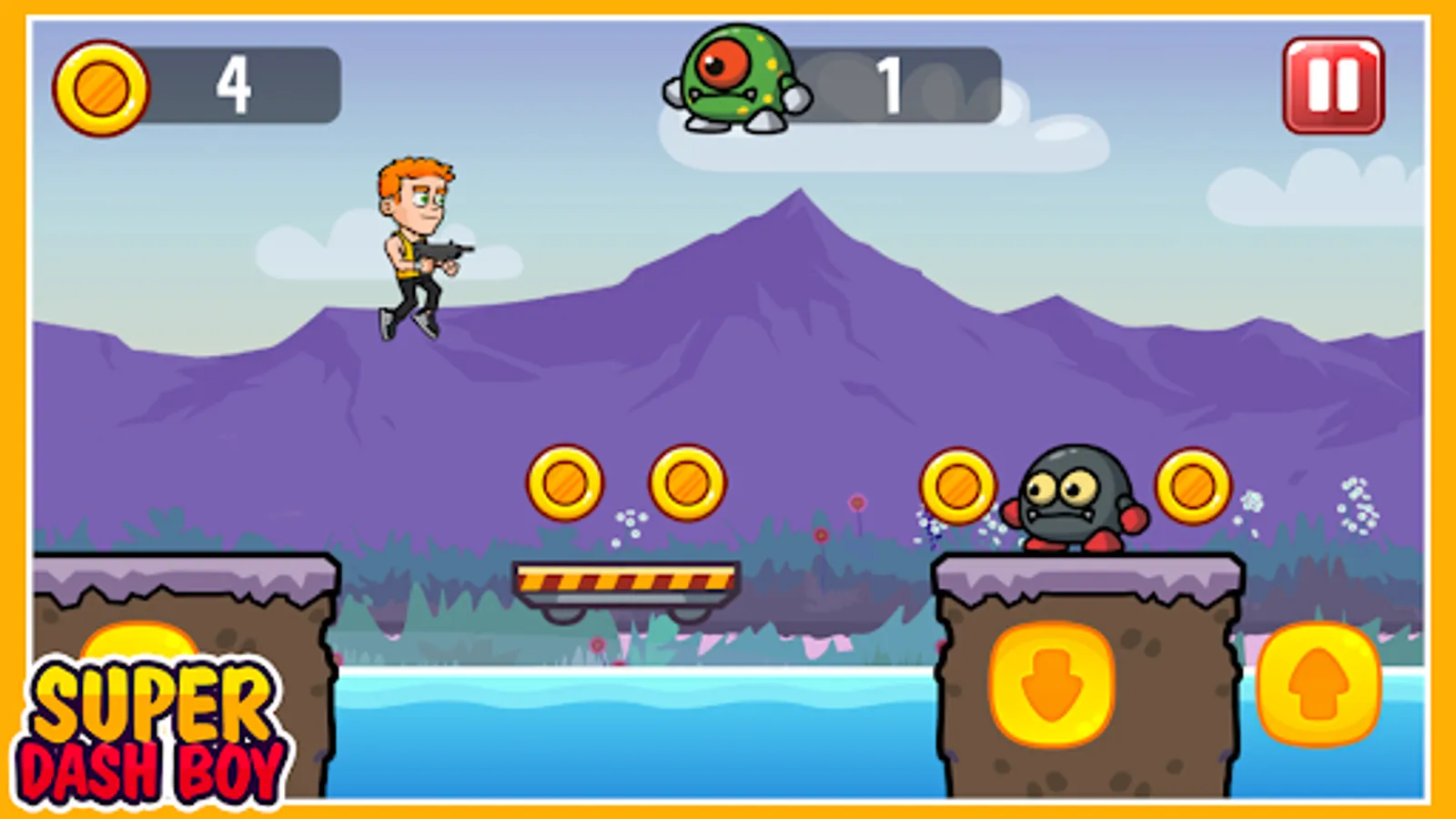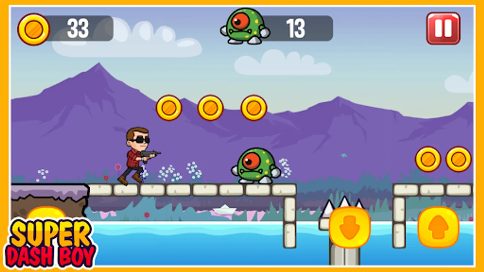 Super Dash Boy - Run, jump and shoot the monsters, avoid the obstacles, collect points and use gadgets.
