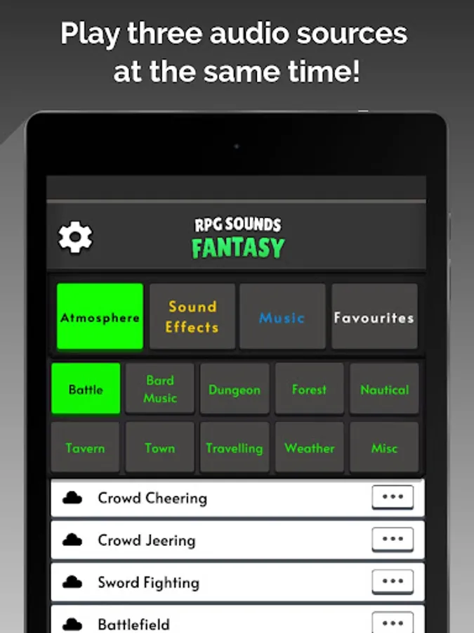 *Multiple Audio players: Play atmospheric sounds, sound effects and music tracks all at the same time for full immersion!