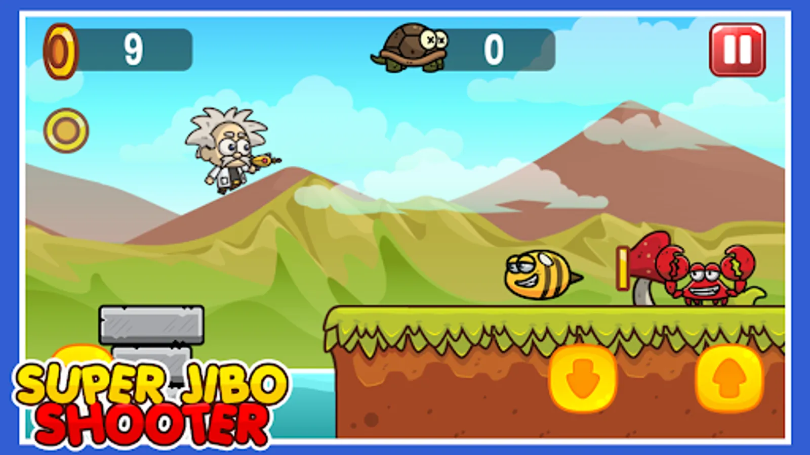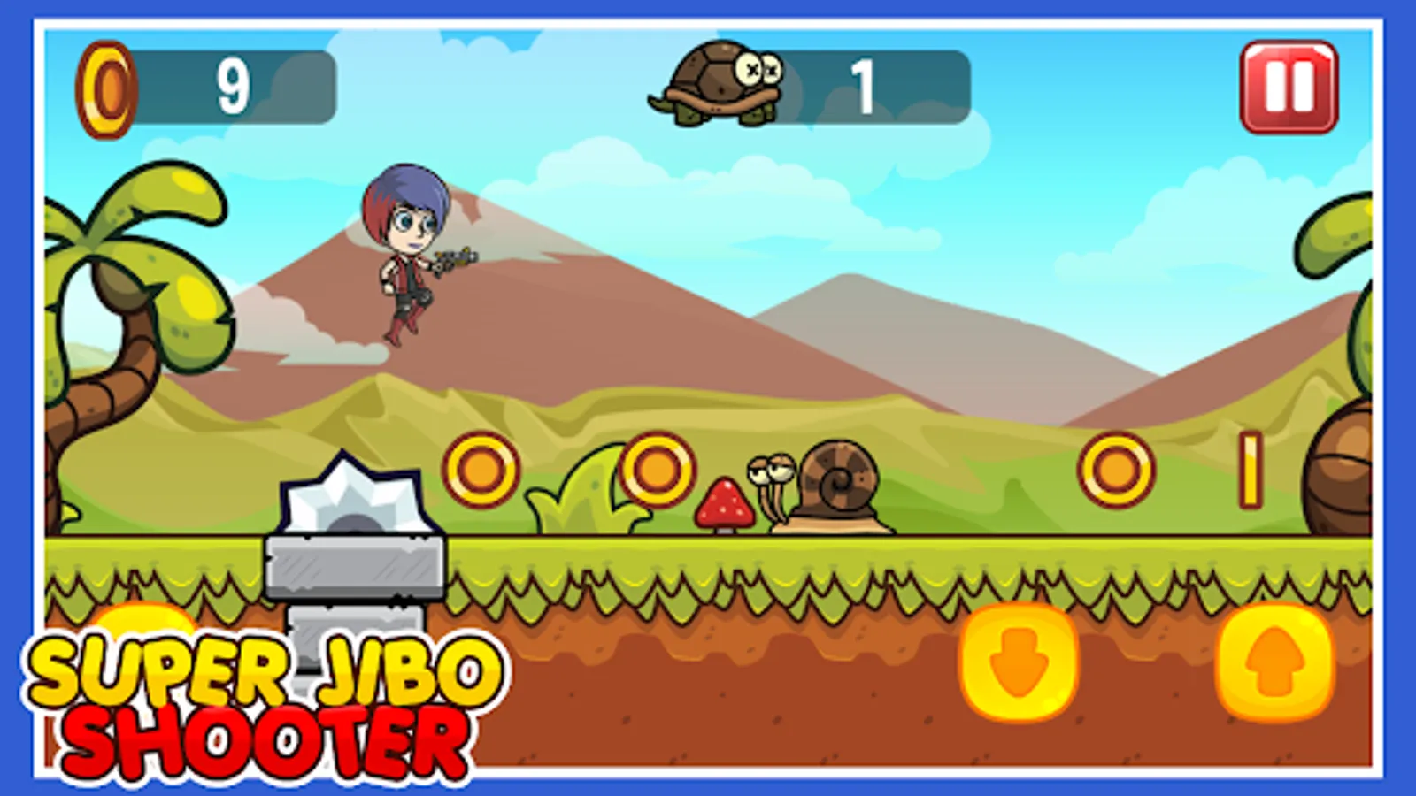 Super Jibo Shooter - Fight the bad animals to survive in this vast world, tap gun button to shoot the enemies, tap up button to jump, tap down button to slide!