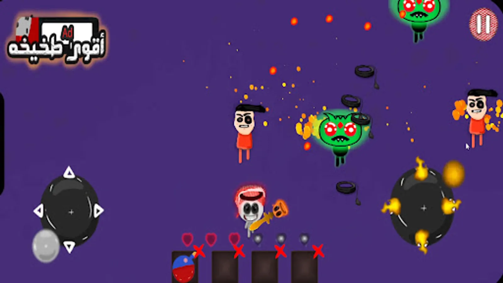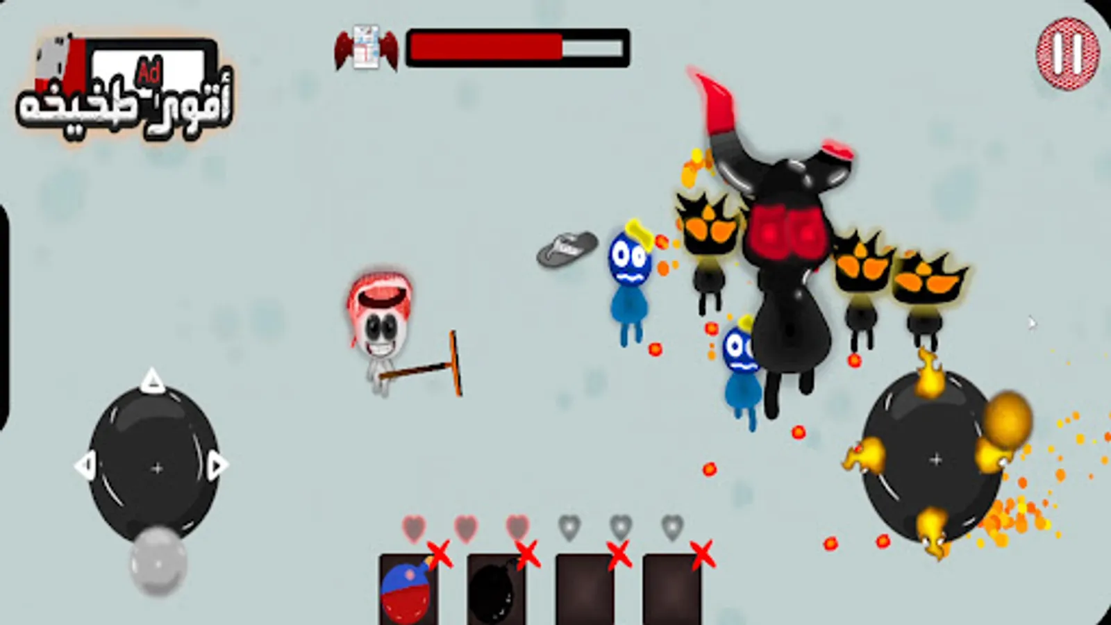 A game of adventures and fast running that is very fun and funny, especially with regard to the sounds that the player and the enemies make in the game. At the beginning of the game, the player has a strange tool in his hand, and within a few seconds, funny enemies start flocking to him from the edges of the map, and all he has to do is run and throw funny things towards him. enemies to get rid of them.