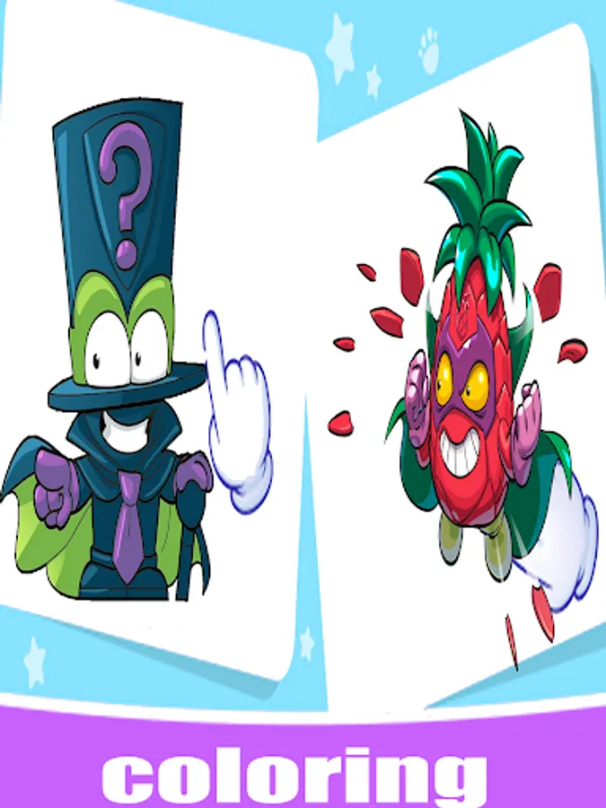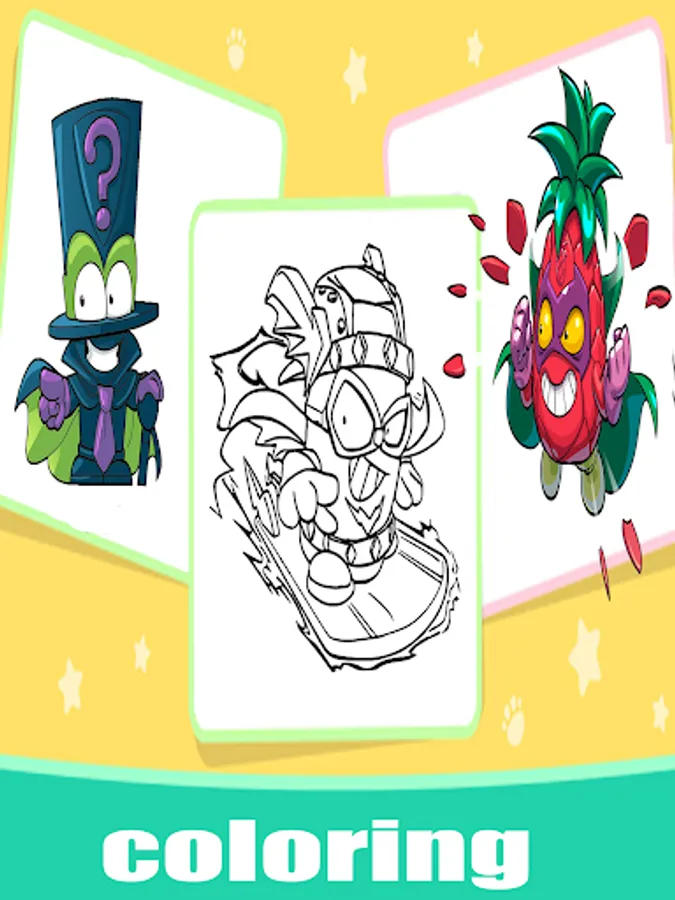 super zings Coloring Book is a free drawing and coloring game. Don't worry we draw it For you just pick any pack of colors and paint!