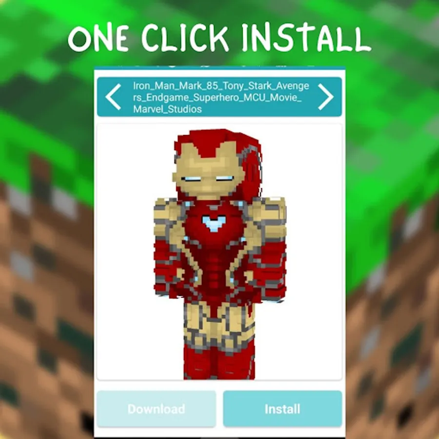Just select the image to open skin's detail than select install. Make your minecraft character more fun and cool.