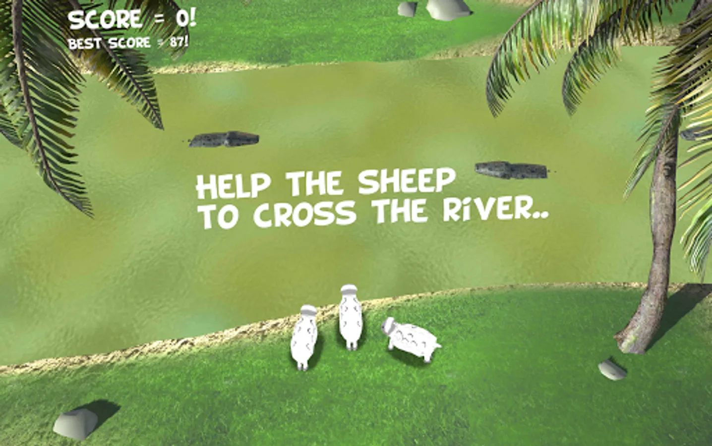 The herd has just arrived at the river and with your skill, the first few sheep will have the advantage of speed and surprise to cross the river. However as the rest of the herd catch up the sense of urgency will rise, will you have the skill to get the whole herd to cross the river?