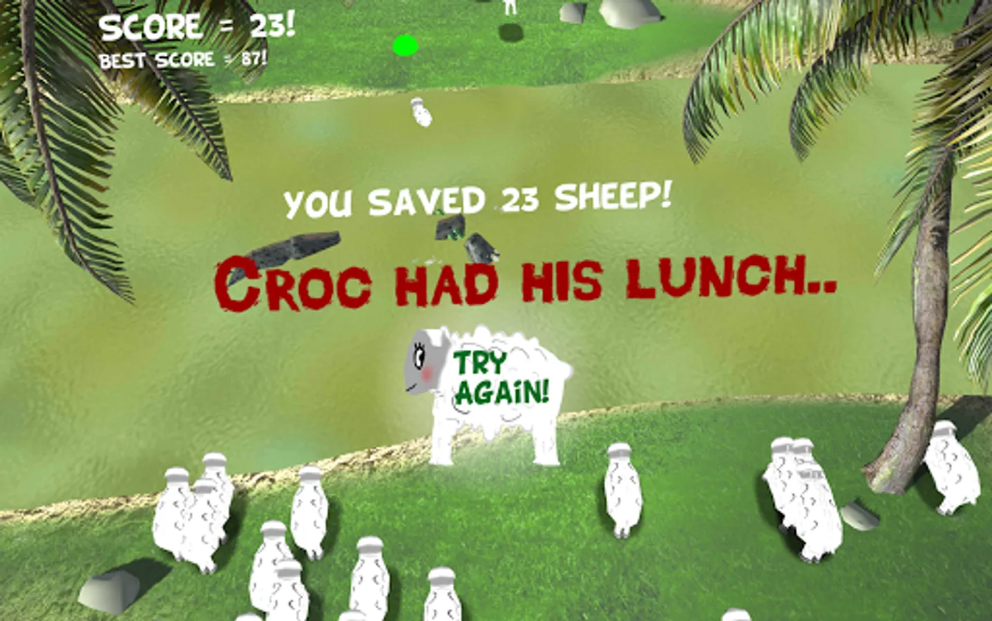 You will need skill to get the sheep past the croc crossing. A point and click is all that is necessary but the catch is hitting it at the right time to protect the sheep from the lurking crocodile attacks.
