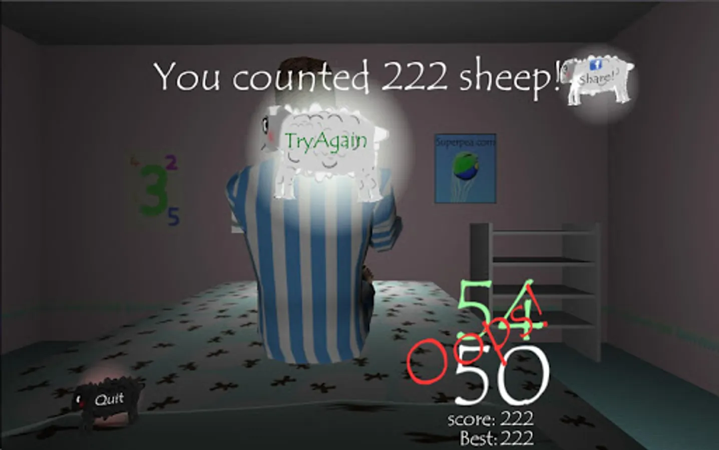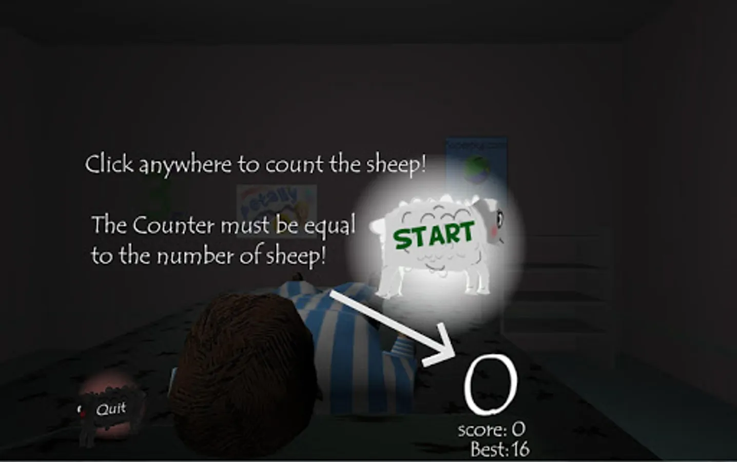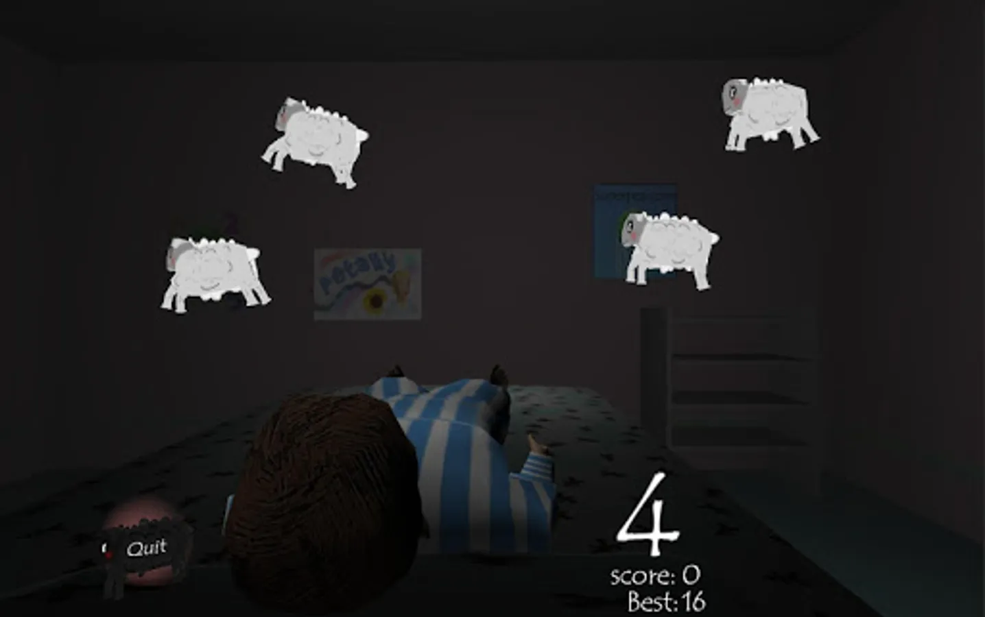 The game can also be used for people who find it difficult to sleep using "sleep mode" where sheep gently waft across the screen while you easily learn to count them and start to nod off into an easy dream..