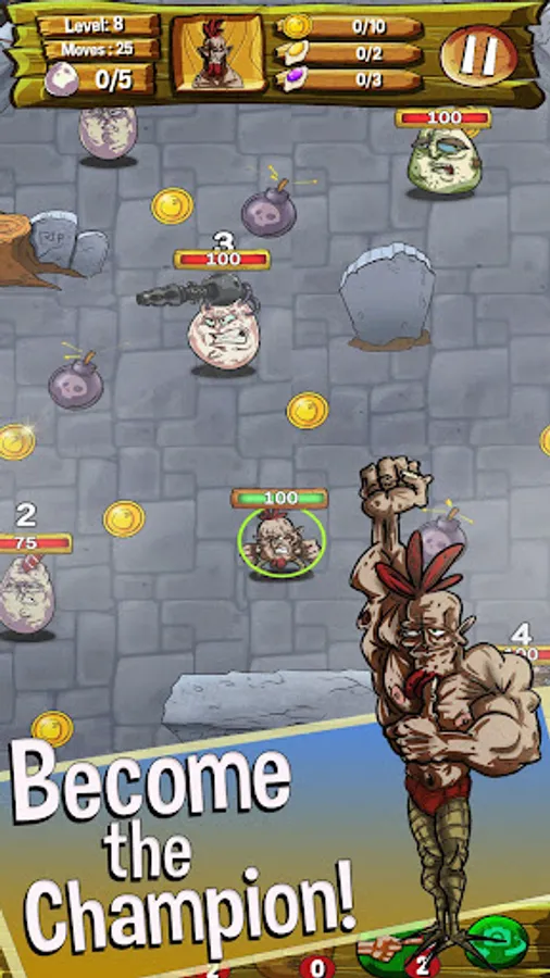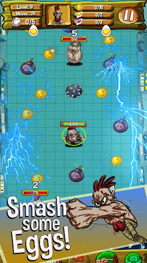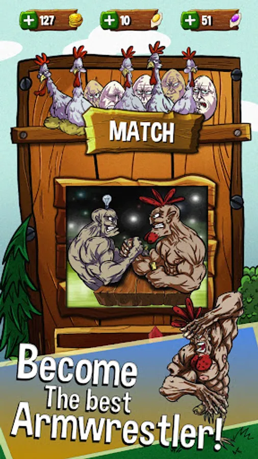 Play the role of an angry bodybuilding rooster and collect all yolks from the super eggs to become an arm wrestling champion.