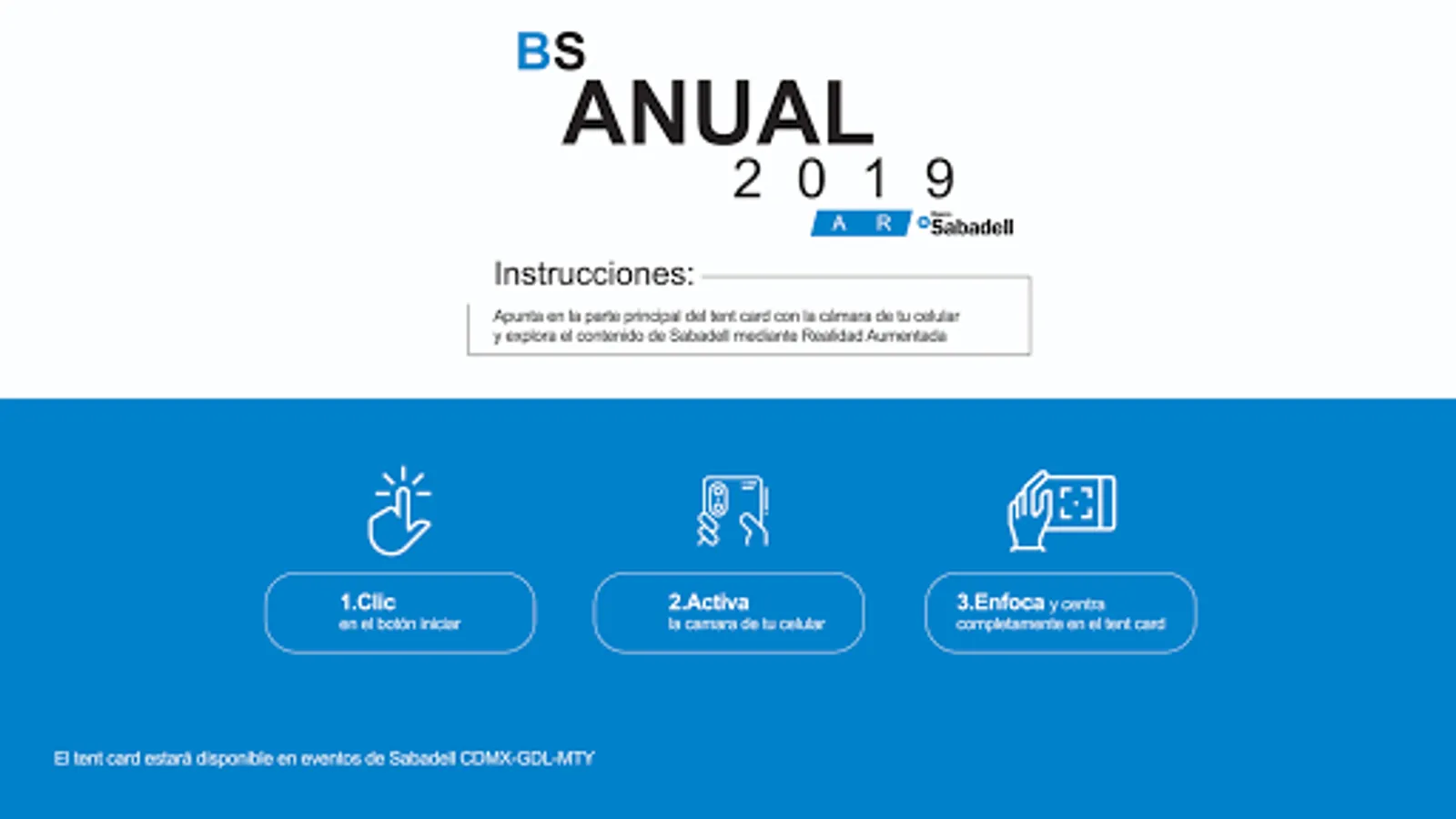 Augmented Reality application to use in the Banco Sabadell CDMX-GDL-MTY event, where the tent cards will be delivered to make use of the application.