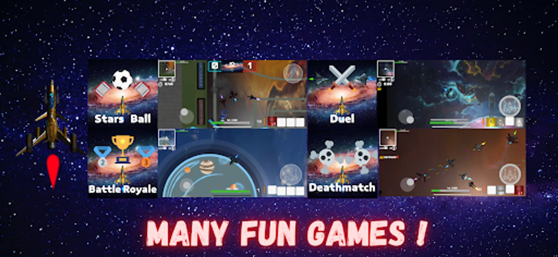 Stars Survivor is a fast-paced Battle Royale-style multiplayer space shooter made for mobile. Play with your friends or solo in a bunch of game modes under 3 minutes.