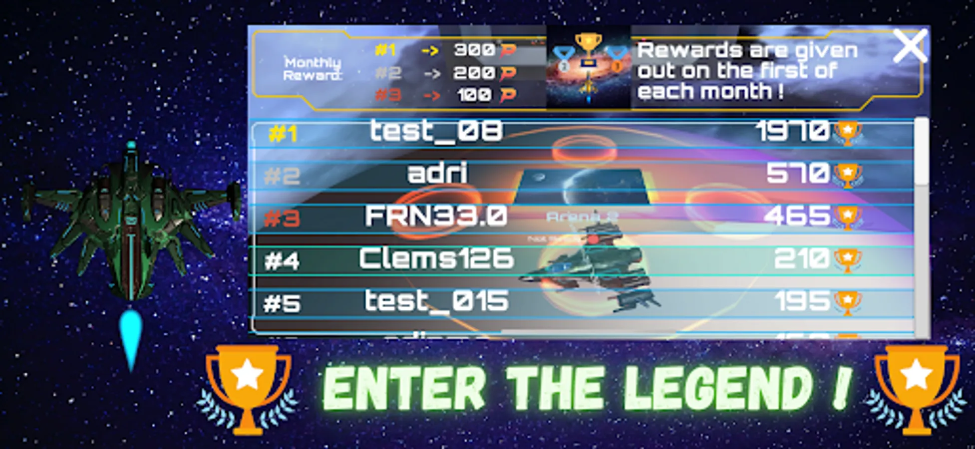 Climb the leaderboard and earn UNIQUE rewards! Dozens of different ships, lasers and thrusters to unlock. Fun guaranteed!
