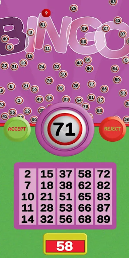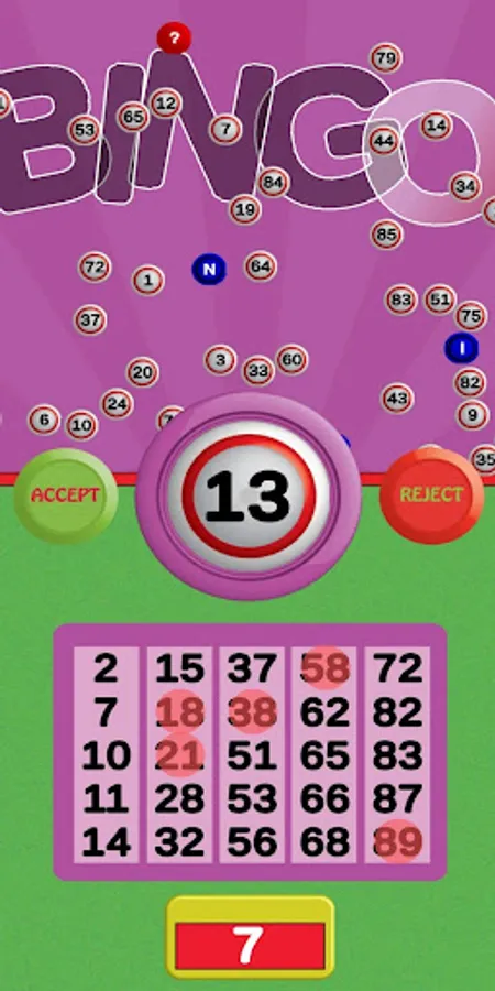 Race against the clock in this fast paced modern take on the classic Bingo. Quickly decide to accept or reject the number called depending on wether it's listed on your Bingo card. But be careful, accepting the wrong number will have consequences.