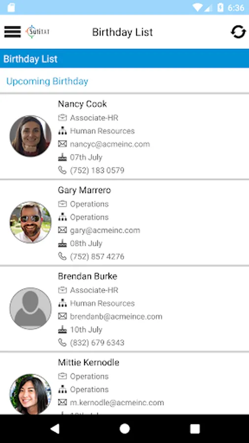 Employee details such as address, phone numbers, and email addresses are made available at your fingertips.