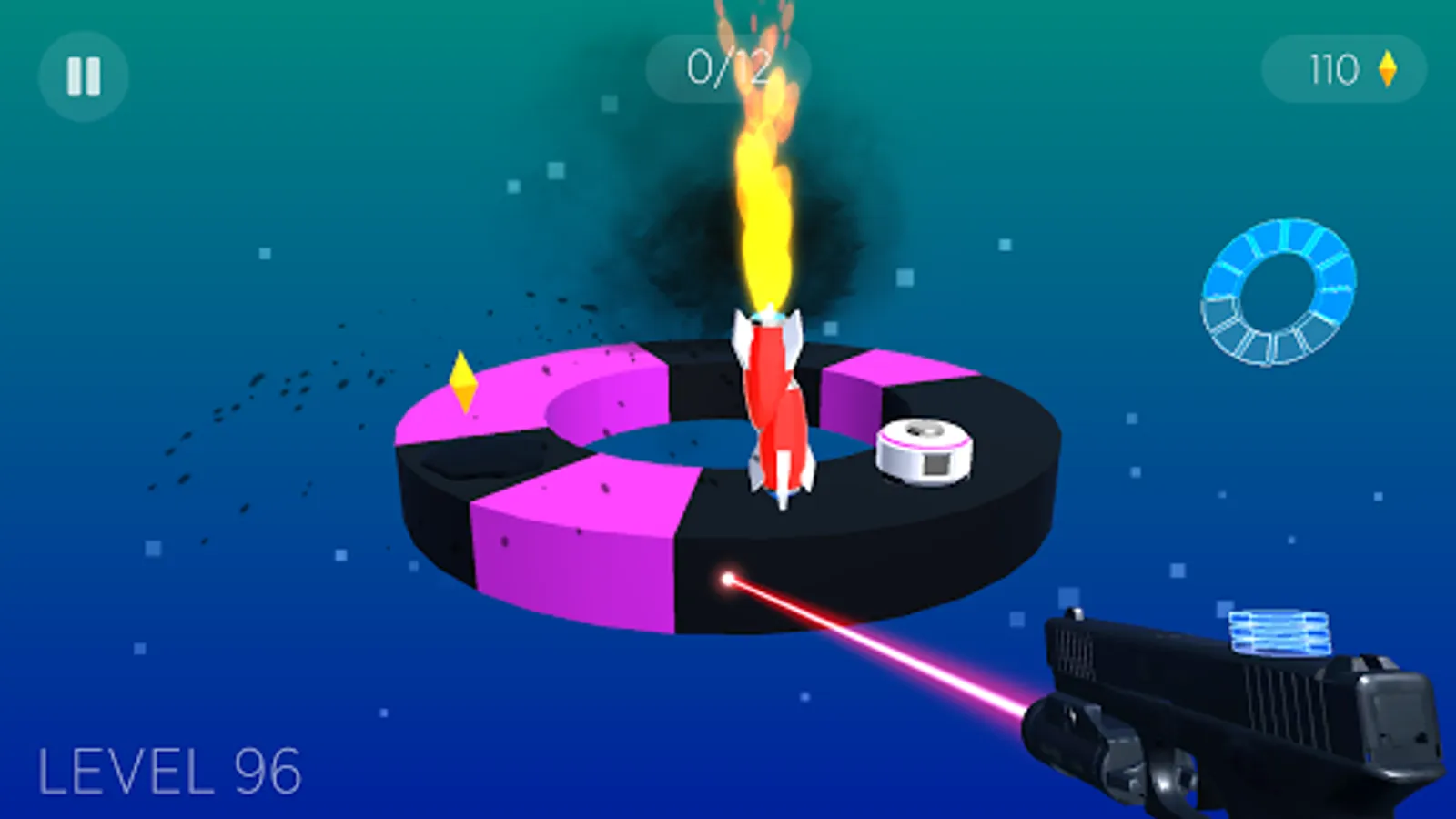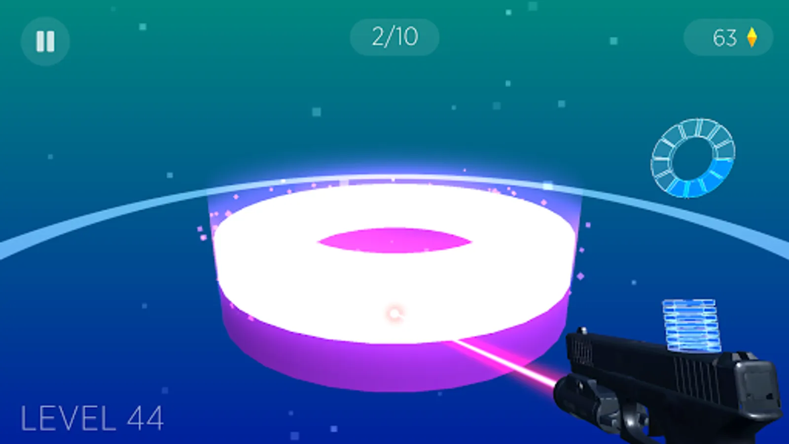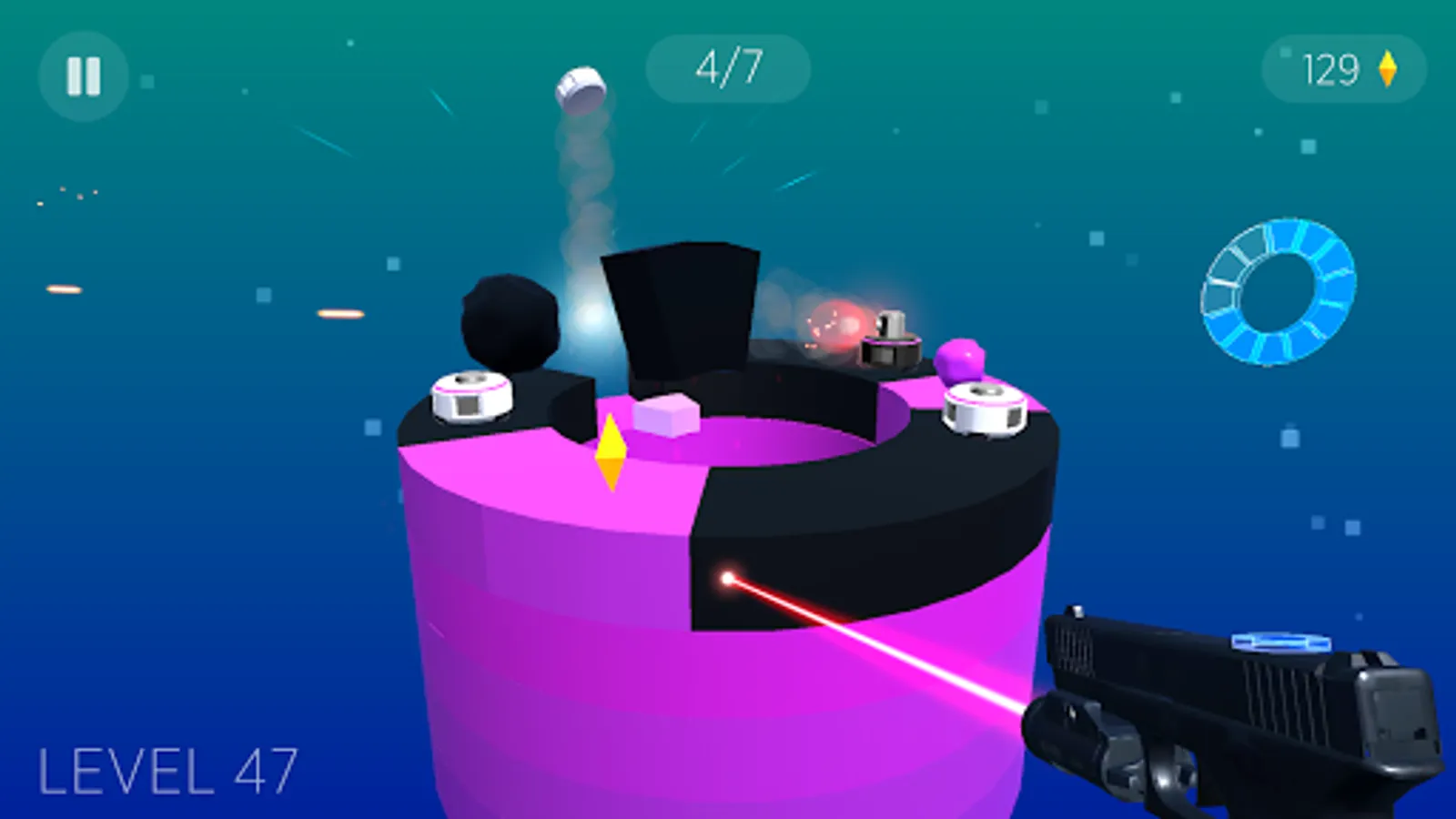 Each level contains bad and good bonuses. Shot and rotate circles to make full color ring and build up your tower. Every 10th level you must win final boss with new gameplay. You can unlock new colors, backgrounds and guns.