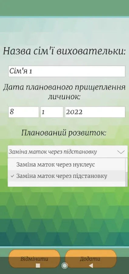 This program is a tool that will help you simplify the control of foster families. You create a foster family in the program according to the one you have in the apiary, after which you can view the stage of development of the uterus in the program and what work needs to be done with it.