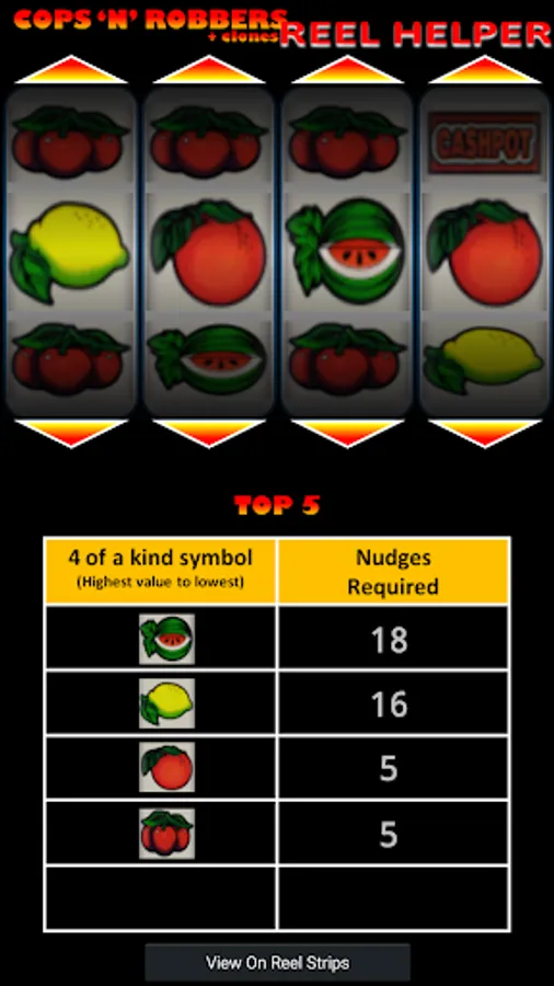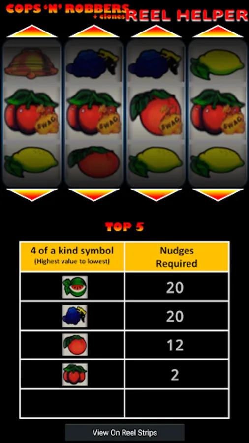 Move any reel up or down one position at a time. For each position you will then be shown the best 4 of a kind fruit win within 20 nudges.