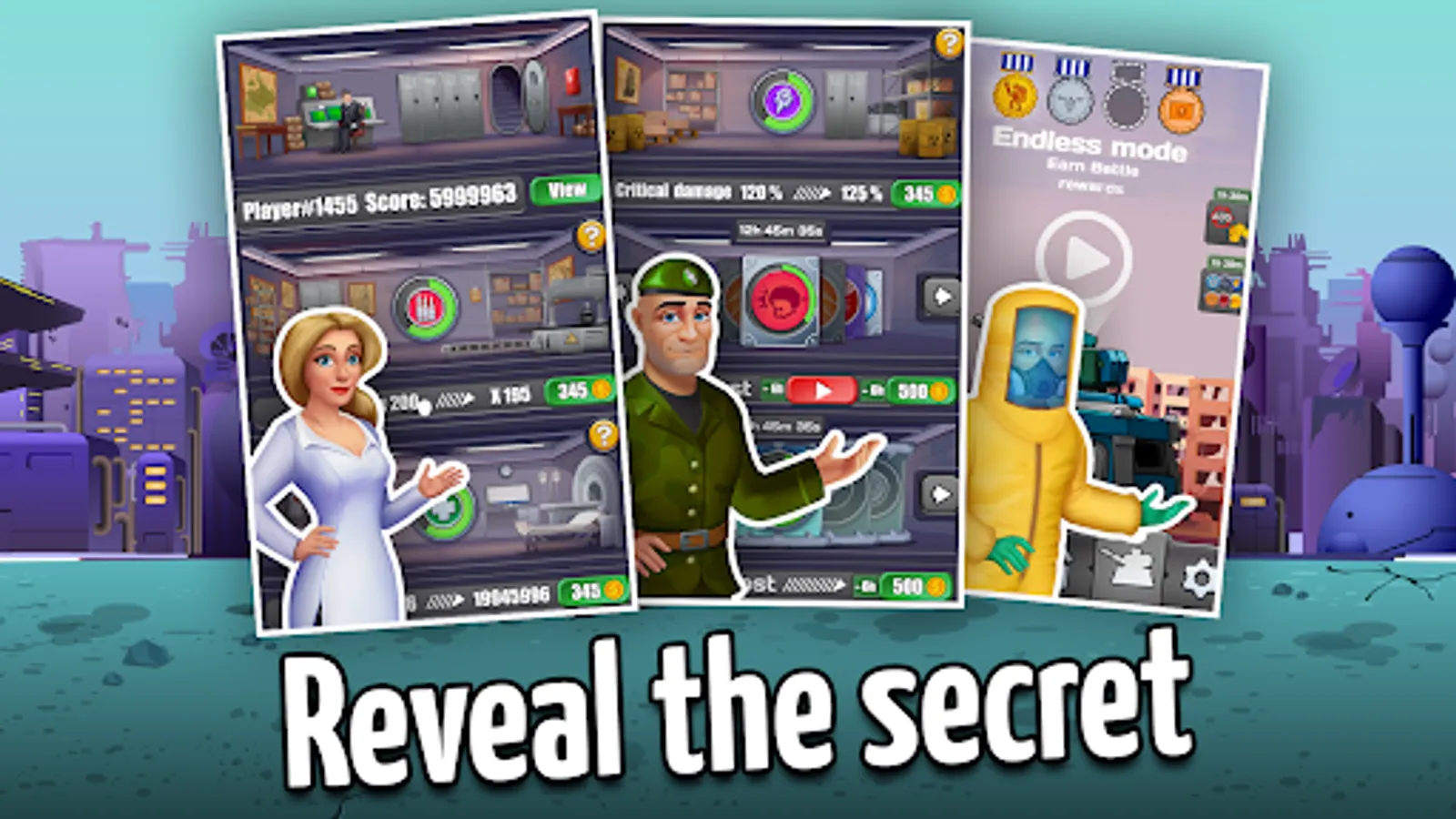 Players do not stand still; instead, they are constantly improving basic skills. Remember that the stronger you get, you have more chances of winning. Let us increase the chance of a critical attack, intensify the damage done to the base, raise the health level, or invest all your experience in increasing your income from each task. In Tower Shooter: Crazy Bunker you are the only one who decides for yourself!