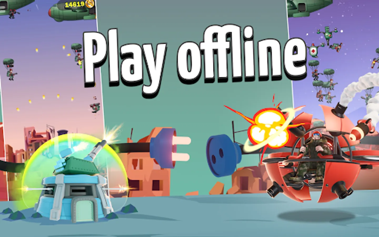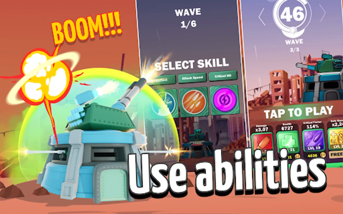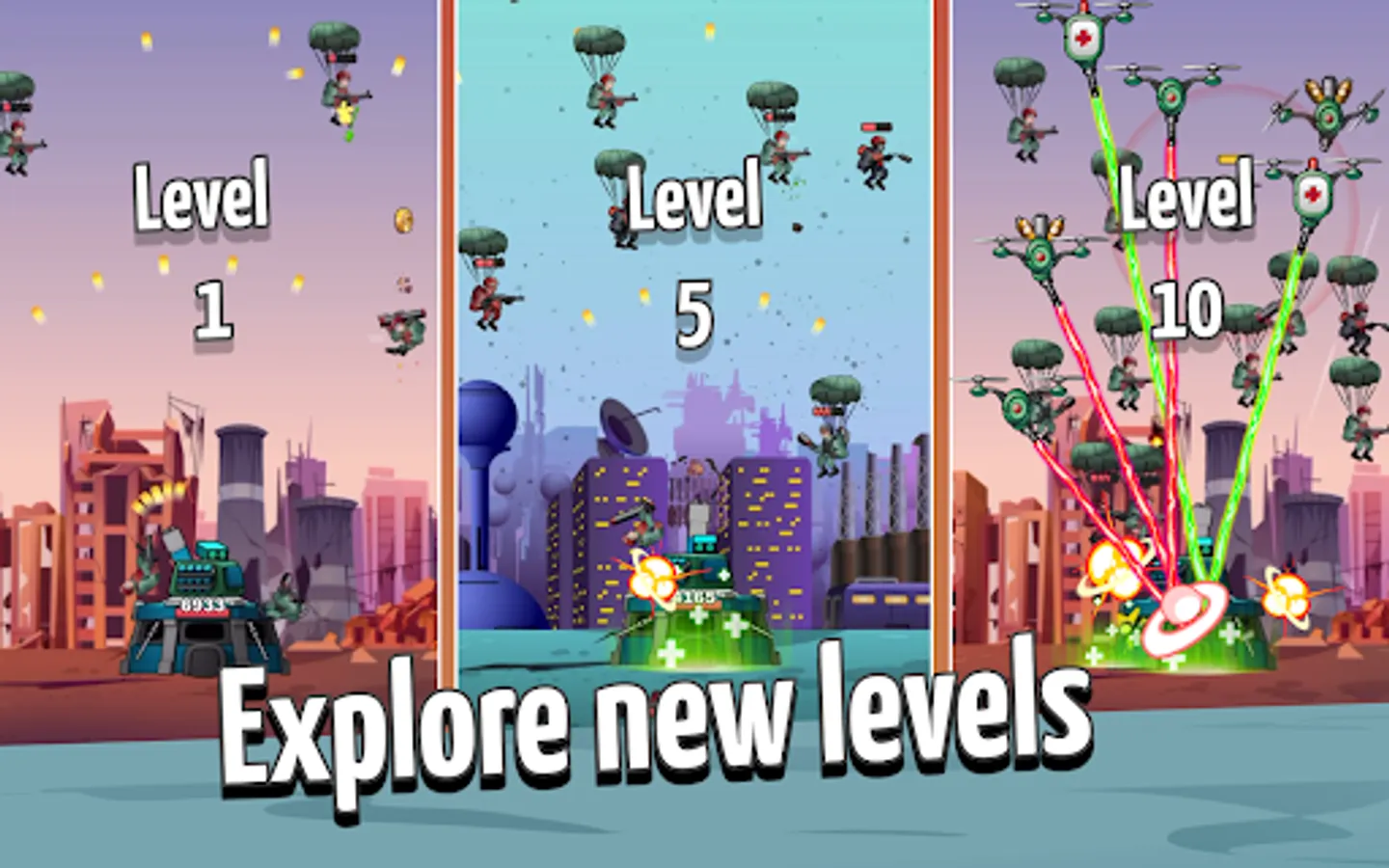 The more powerful the enemy is, the more advanced weapons will be required to tackle the opponent. Choose between an anti-aircraft gun, a shotgun, a gatling gun, a laser, a rocket launcher, and the cannon for the hottest showdowns! Do not forget about a whole range of skills that can be used on the battlefields.