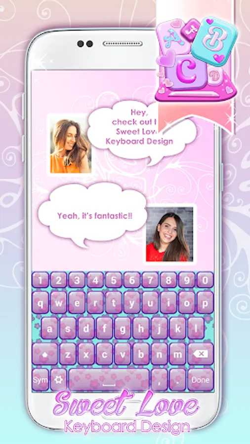 ✤ If you like to send a text message, this is definitely great opportunity for you. Now you can spend hours and hours writing SMS messages to your best friends using cool keyboards with emojis, multimedia keyboards, baby girl themes or tender teddy bear keyboard backgrounds. We are sure that you will be satisfied with one of the most incredible cool apps which we have created just for personalizing your “bluetooth keyboard”. Download ✤ Sweet Love Keyboard Design✤ and see for yourself. Choose the desired background theme and keyboard language and enjoy typing love messages to your BF in many languages.