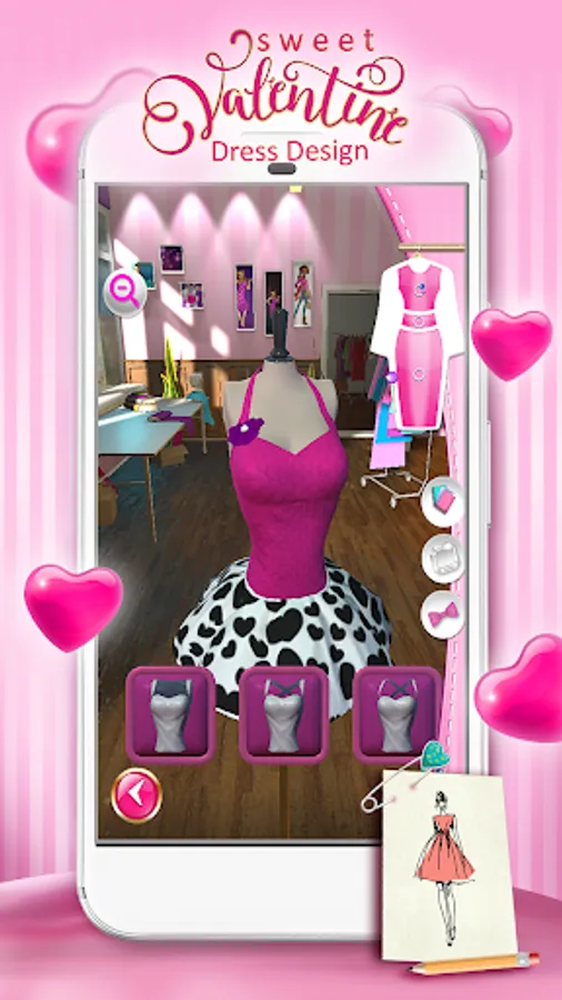 ๐ โLove Is In The Airโ! Explore ๐ Sweet Valentine Dress Design ๐, start with fashion designing now and become a fancy dress designer! Our dress designer game offers you loads of trendy materials and accessories for creating glamorous pieces of clothing. Have fun in one of the top trending dress up games for girls! Create elegant dresses in one of the most impressive design games, which are the coolest โmakeup gamesโ at the same time! A brand new fashion dress boutique full of trendy and chic clothing items awaits you in one of the top trending fashion designer games on the market. Our red carpet fashion games for girls will lend you a hand with making dresses for high-school parties, prom night and any other occasion and can serve as the perfect makeup and dress up games as well. ๐