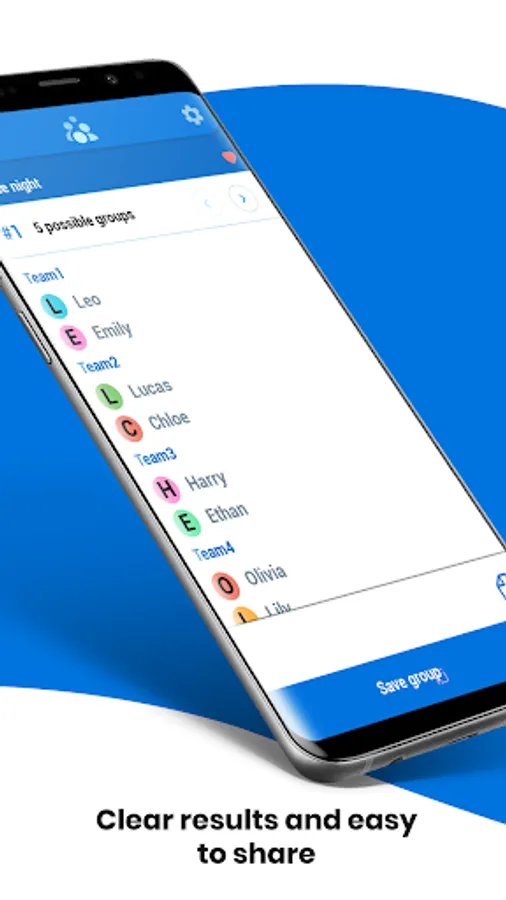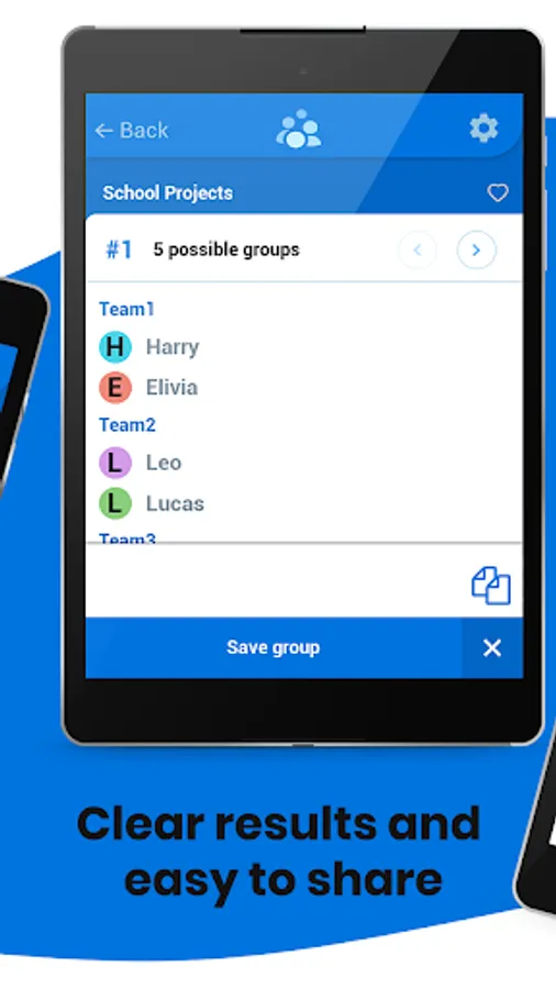 • Share Results: Group Maker transfers group information to your clipboard so you can paste it anywhere, like in SMS or WhatsApp.