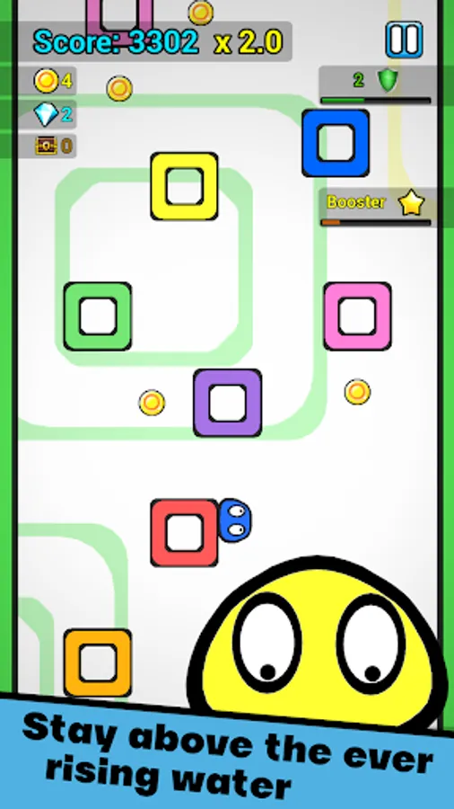 In this climbing adventure, you will go against some really hard tasks. In those cases, it’s best to use the available boosters which will give you more wall jumps, let you collect more diamonds and coins, and generally enable you to jump higher with the slimeball for higher scores. Try to collect them as much as possible as you go up.