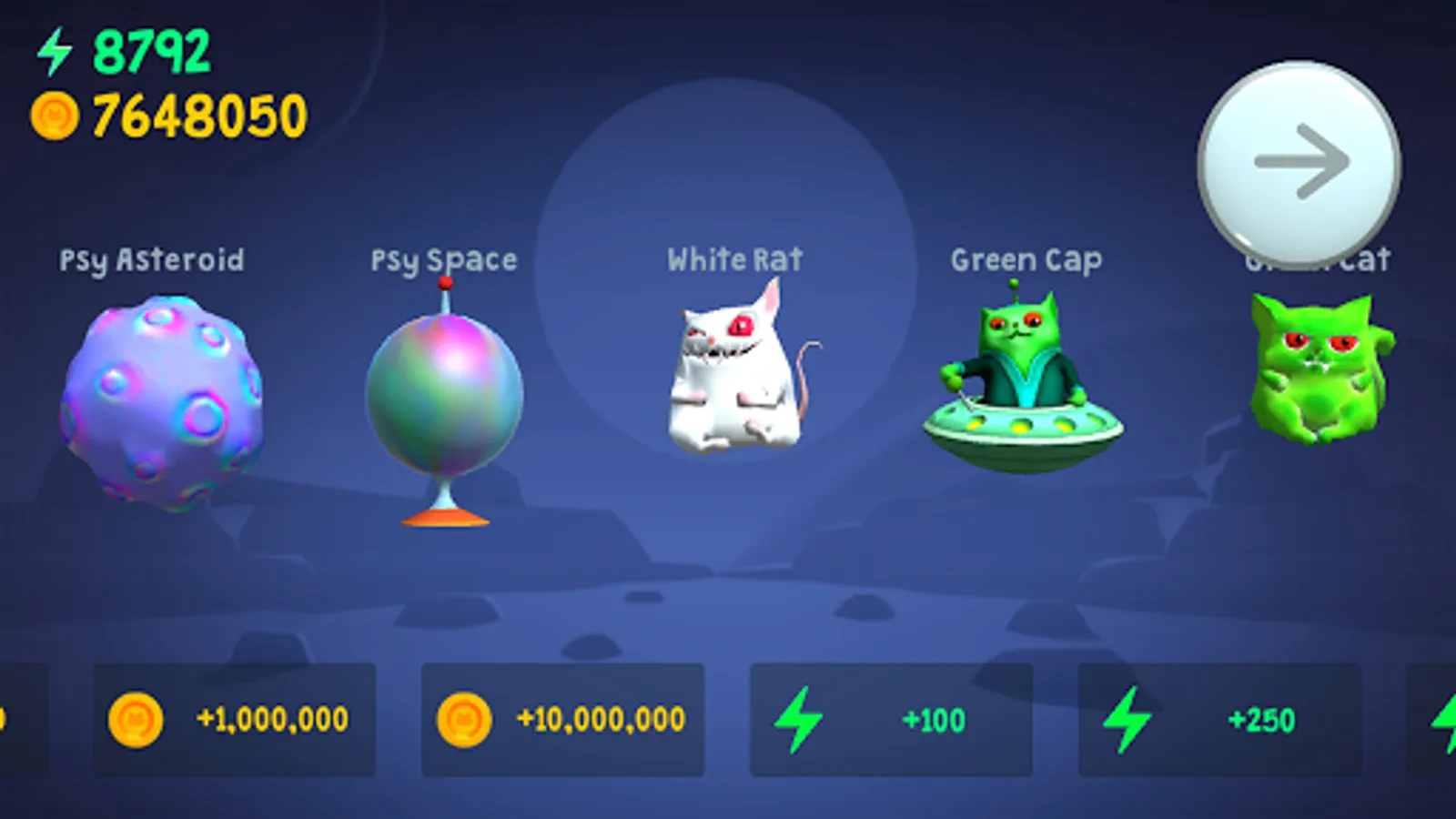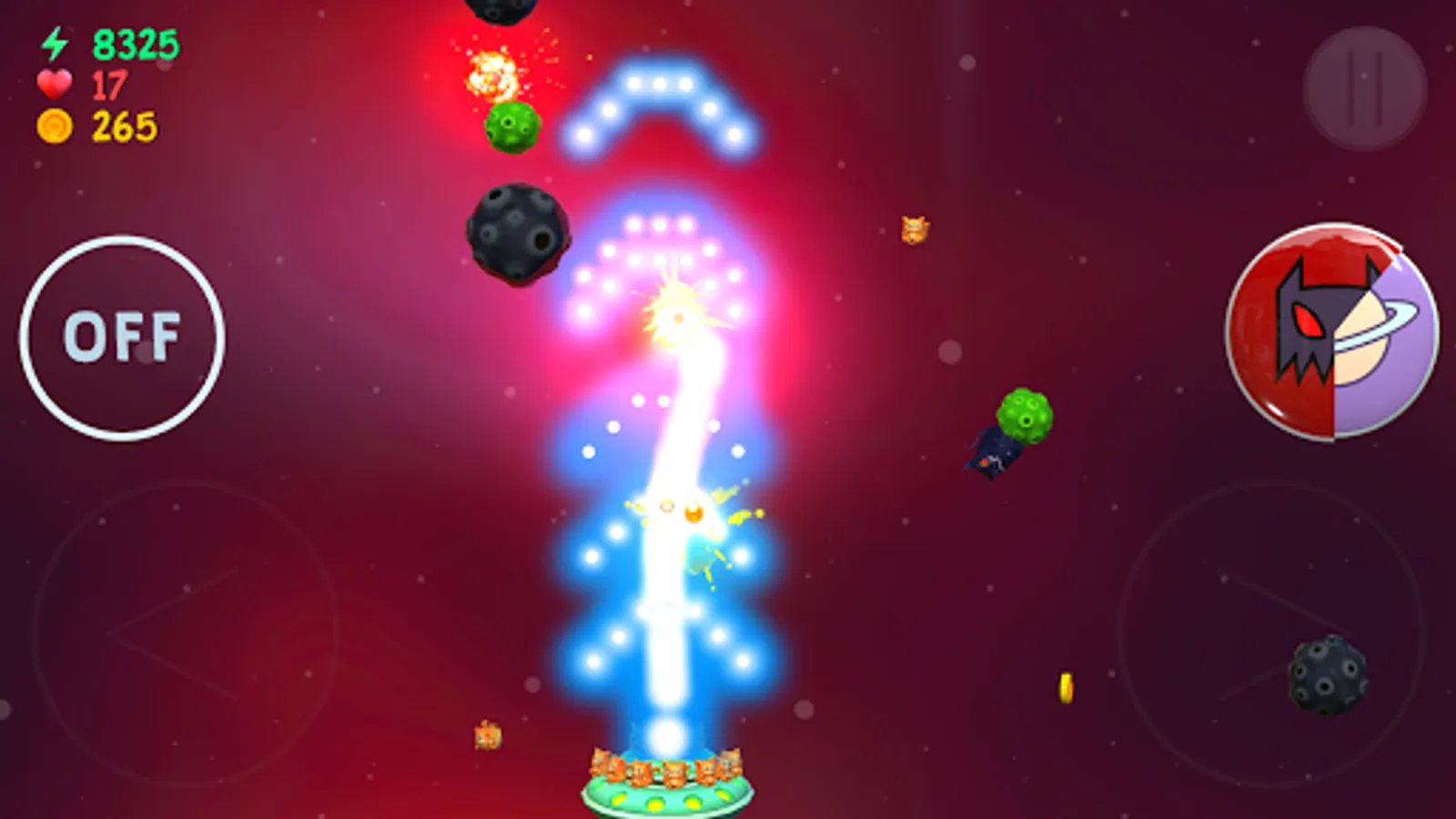A game in the style of cosmic retro-futurism with expressive animated characters, malevolent laughing enemy, stunning 3D explosions, shots and game store with original skins and much more.