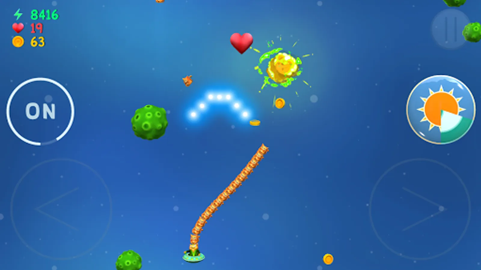 ✓ Fly the spaceship by pressing left or right at the bottom of the screen.