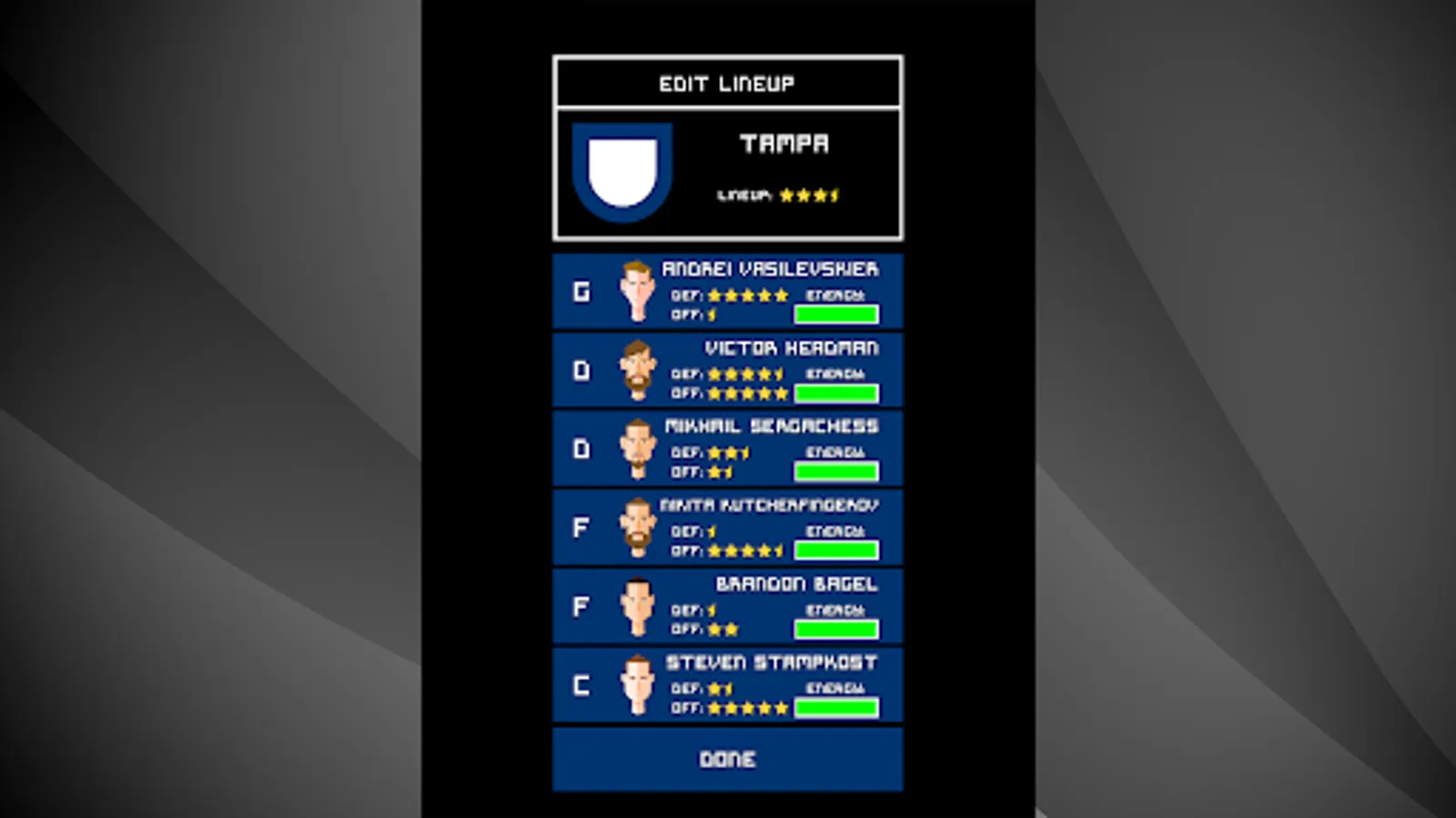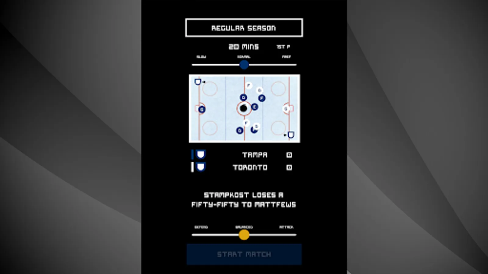 Simple menus allow you to focus on picking your best players and getting straight into the action, but remember to keep an eye on the energy levels of your players and keep your lineup fresh from game-to-game. Play a match in a few minutes, or a season in one session, as you pursue the most illustrious cup on ice in this speedy management game!