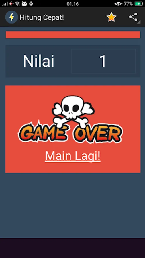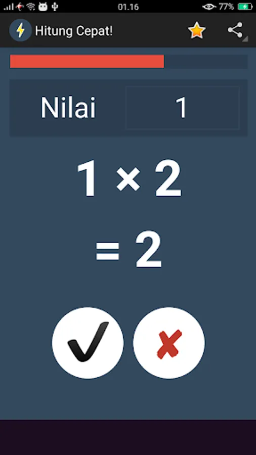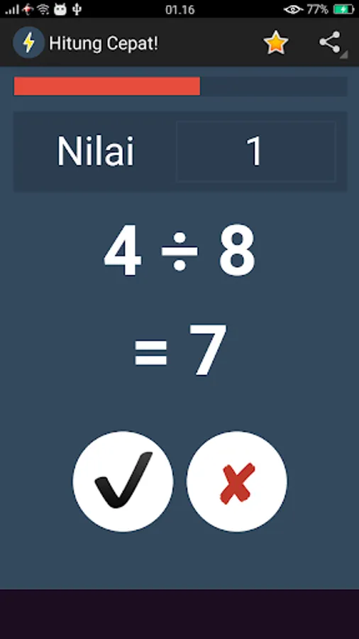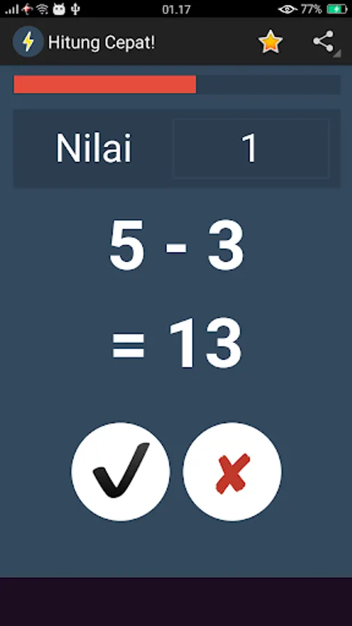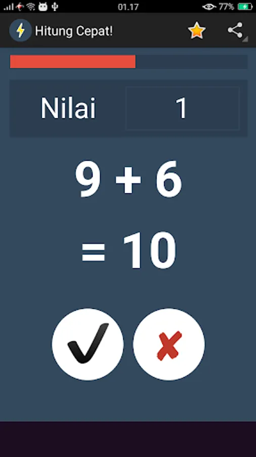 Quick count! is a game to train your concentration to determine whether the answer within the question right or wrong. You are only given less than 2 seconds for each question.