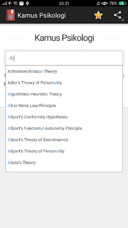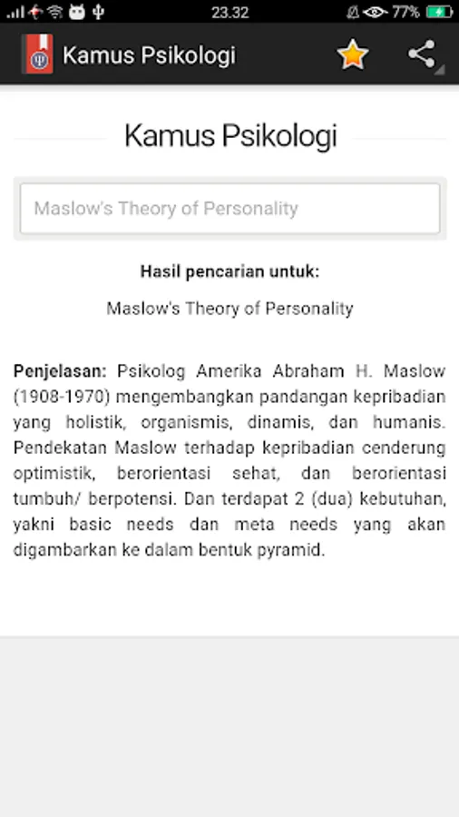 Psychology Dictionary application compiled with quick for users who want to know quickly. In this application dalah described a wide range of terms, theories, and principles in the world of psychology.