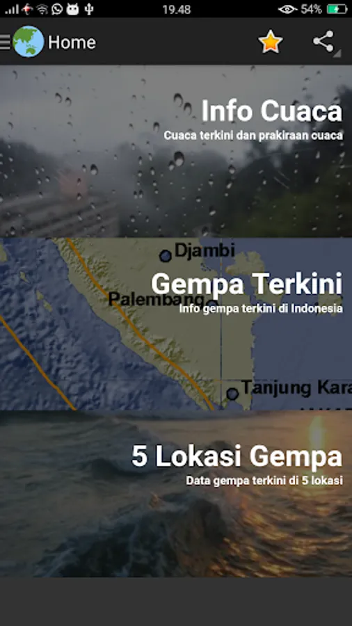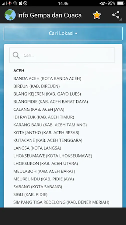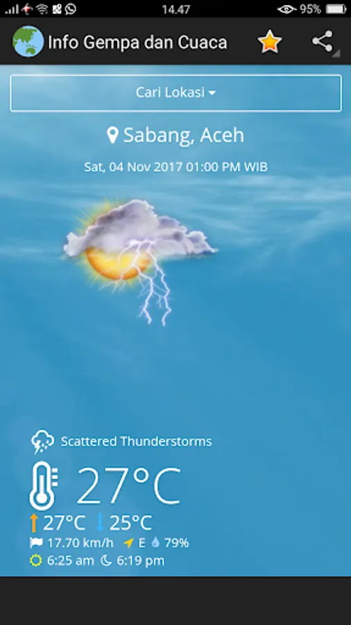 Current Earthquake Info and CUaca Application Info is an app that will help you monitor where the earthquake occurred and provide you with the latest weather information and weather forecasts.