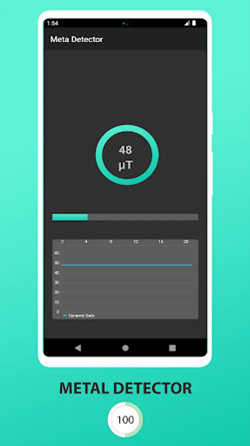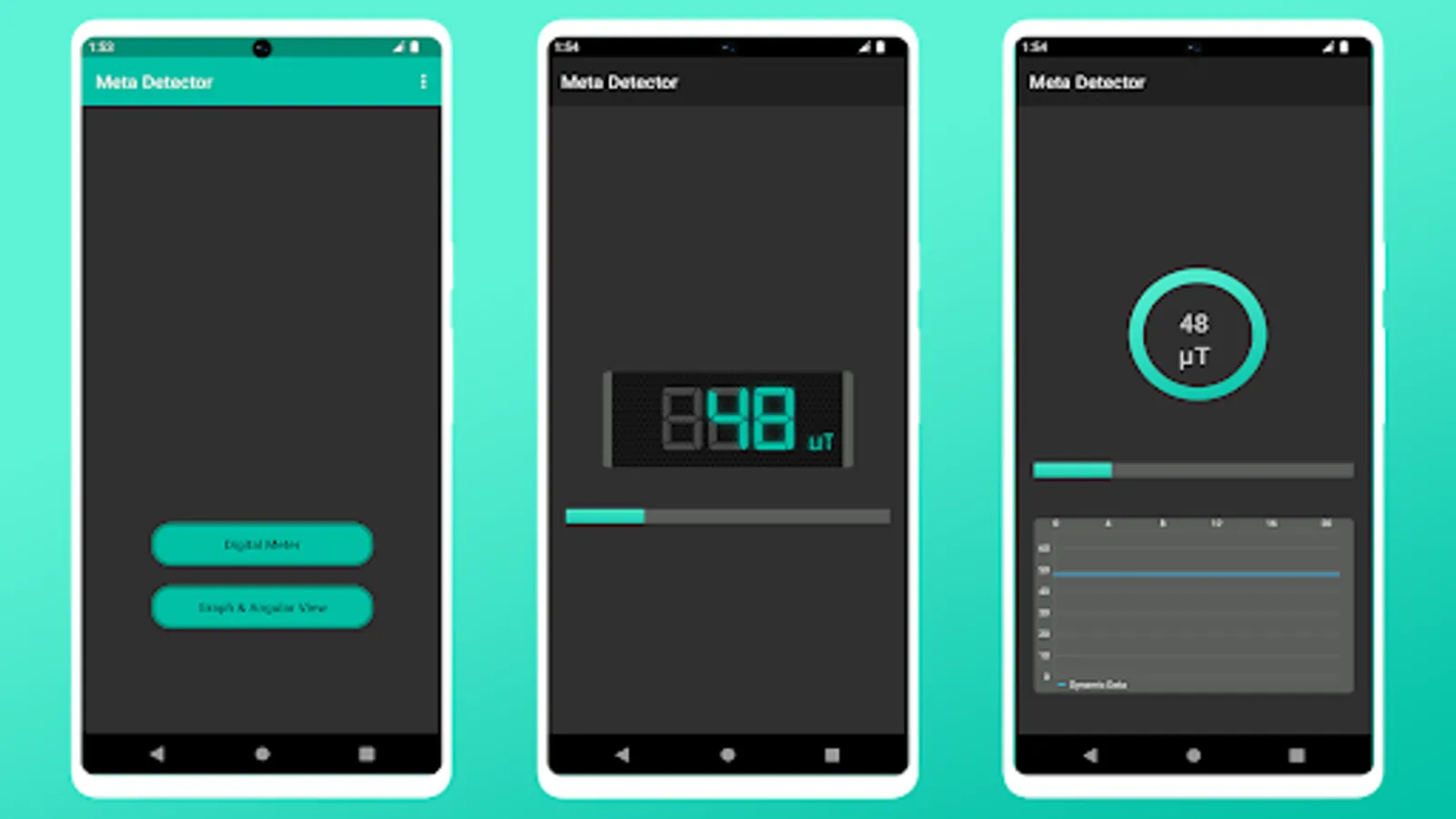 When the app detect metals objects the digital meter will increase its value from 50μT to onwards.