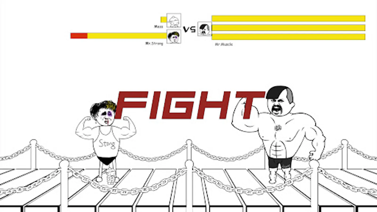 However, when our Mess is being bulled by Mr. Strong, a new stronger enemy appears, and abducts her from Mr. Strong. How would Mess and Mr. Strong do to their common foe?