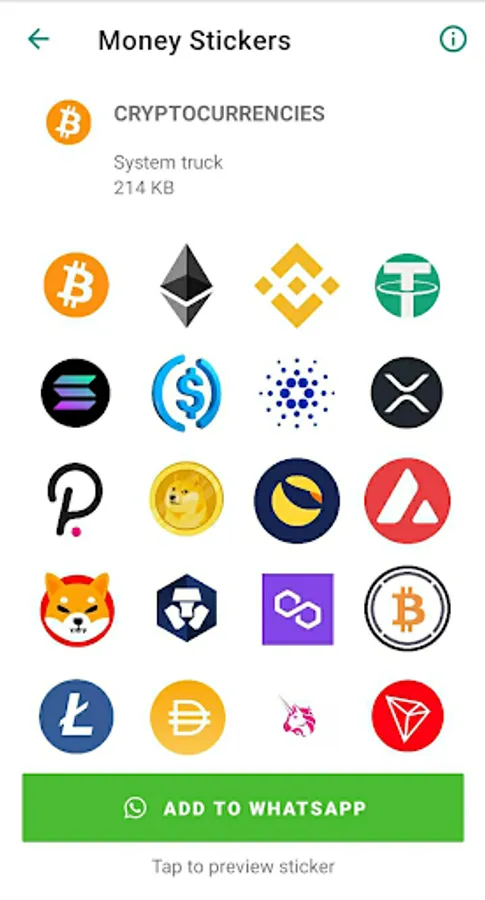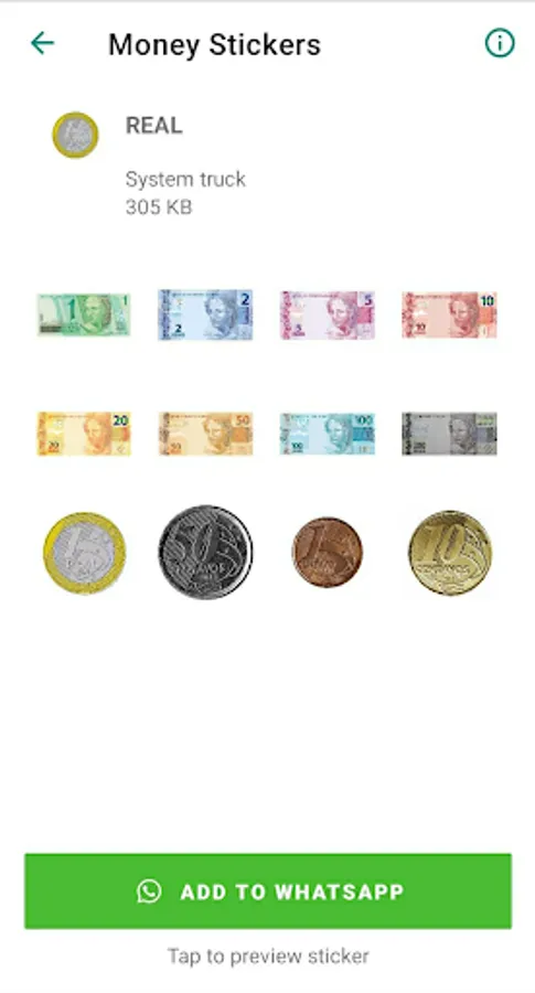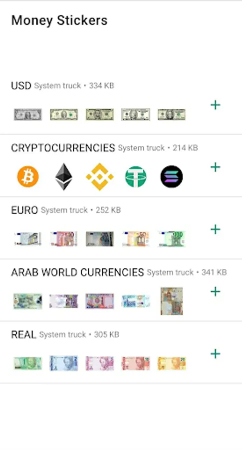 Money Stickers is a figurine app about money. The application contains images of different currencies and cryptocurrencies in the world.