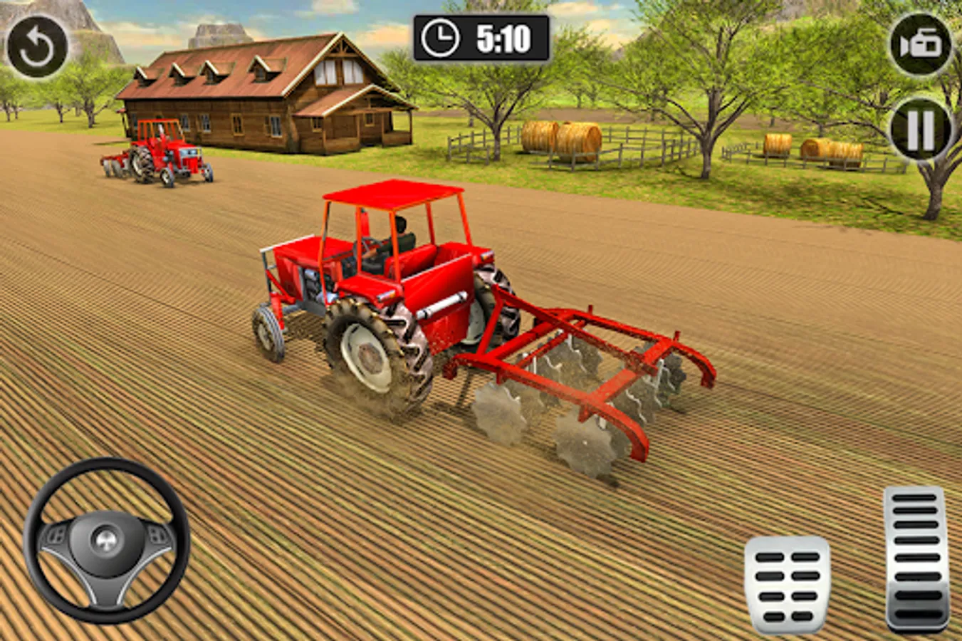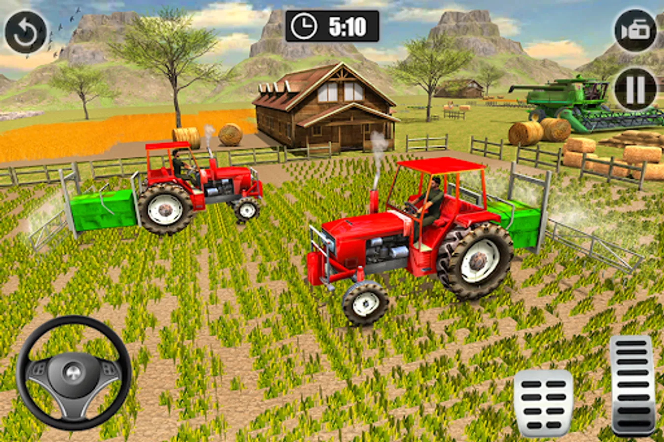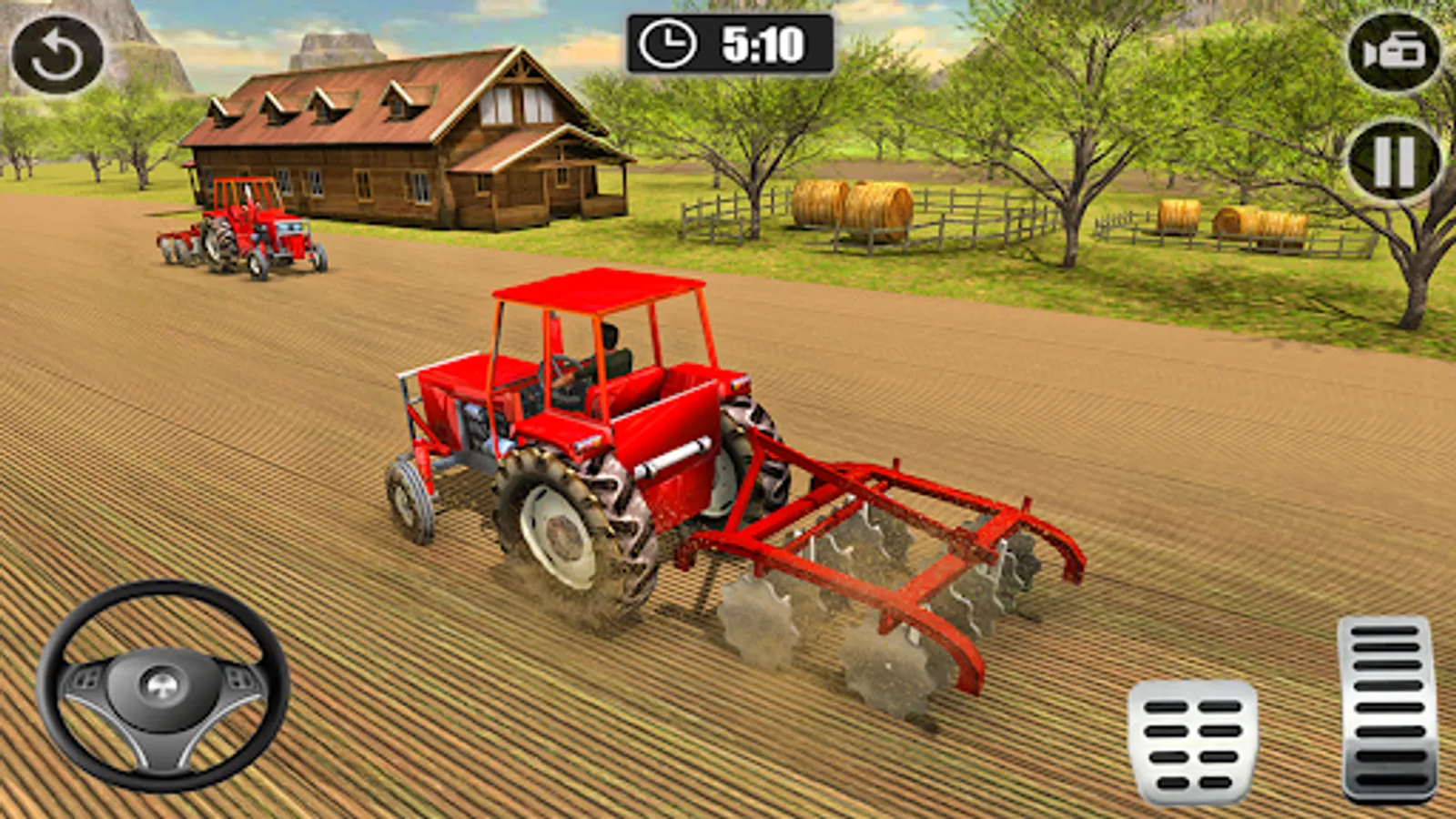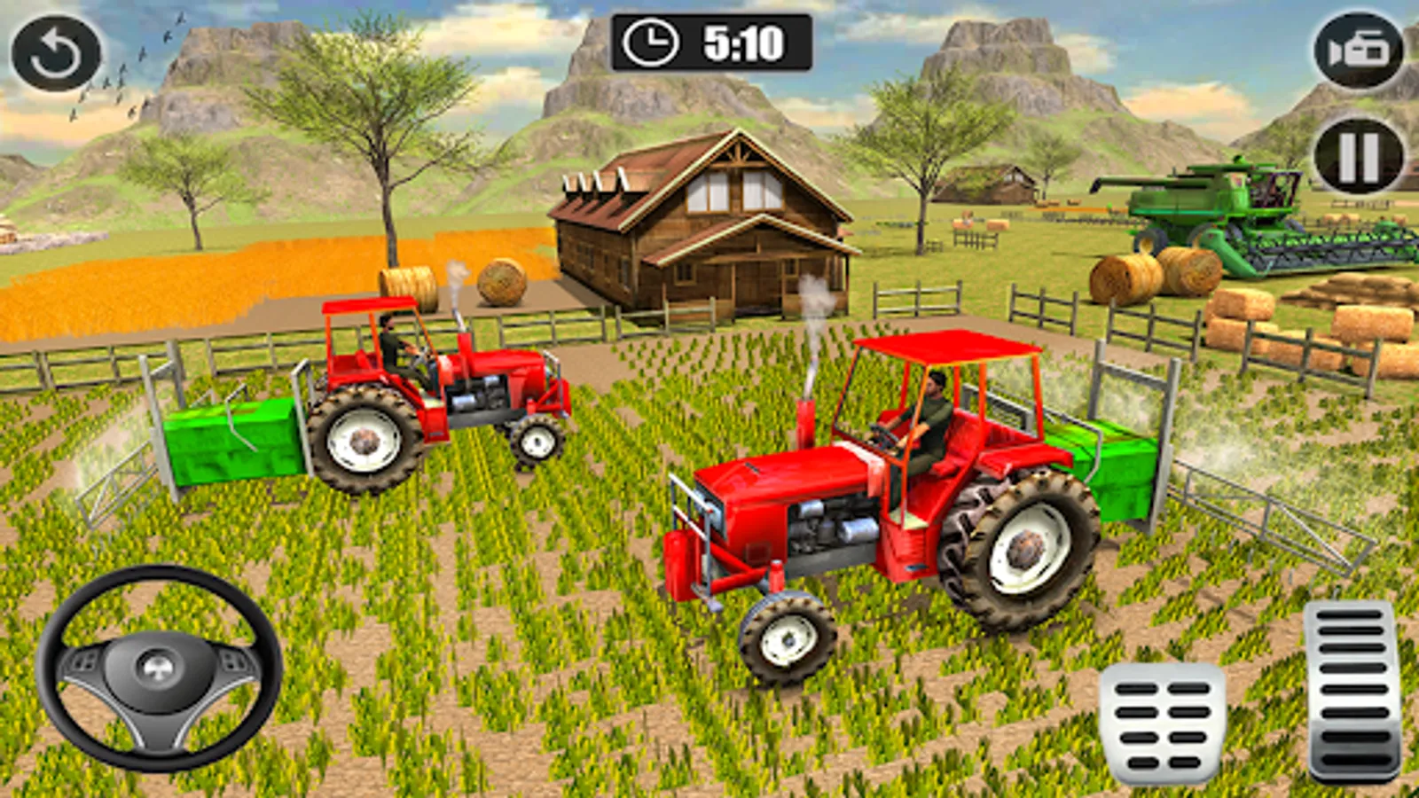 In this new farming SIM game, you have to follow all the steps of real farming like seeding, cultivating, sprayer, and harvesting. Now enjoy the real tractor farming SIM games & mega harvesting game. It's food farming season so it's the perfect time to harvest your crops. Drive-in tractor farming games to the market and sell all your crops. Organics tractor farming games are giving new chances in harvesting crops and enjoy harvesting farms SIM game. Harvest your farmland, use a grain seeding plow planter tools like seed driller, fertiliser spreader, trans-planter, drip irrigation systems, weight sorter, round baler, sprayers, irrigation pumps to aggregate your land. Best game of auto and vehicle in action with the organics tractor farming SIM games & mega harvesting. Farming and harvesting season is on, and so we bring you the new mega harvesting & modern tractor SIM game.
