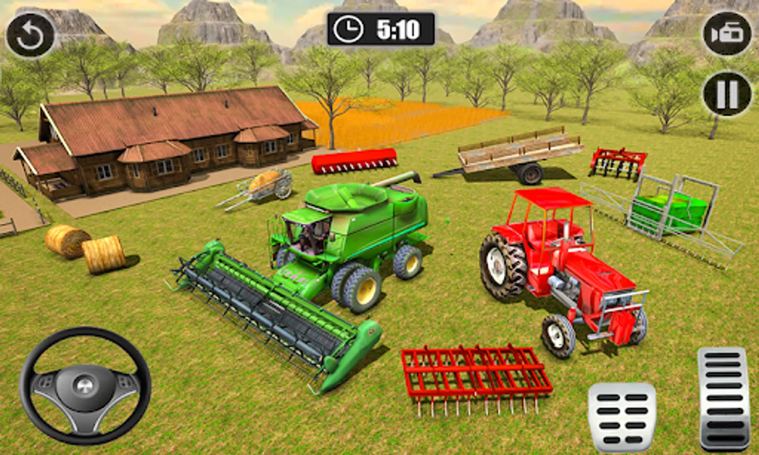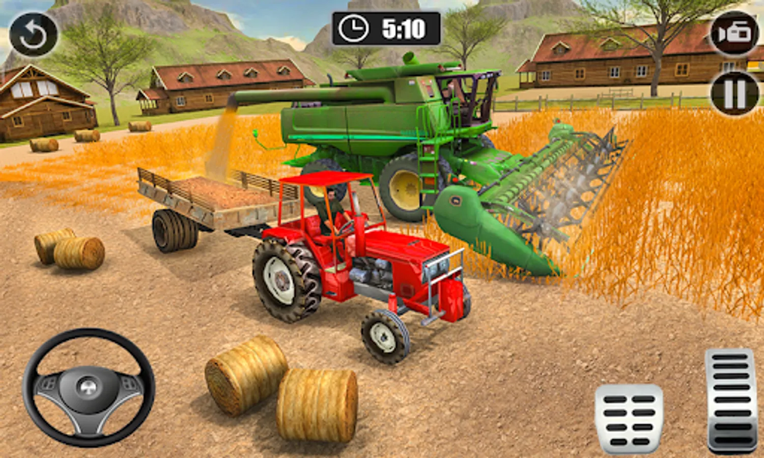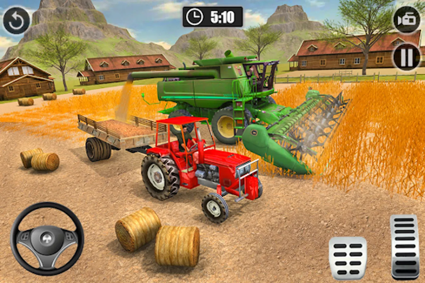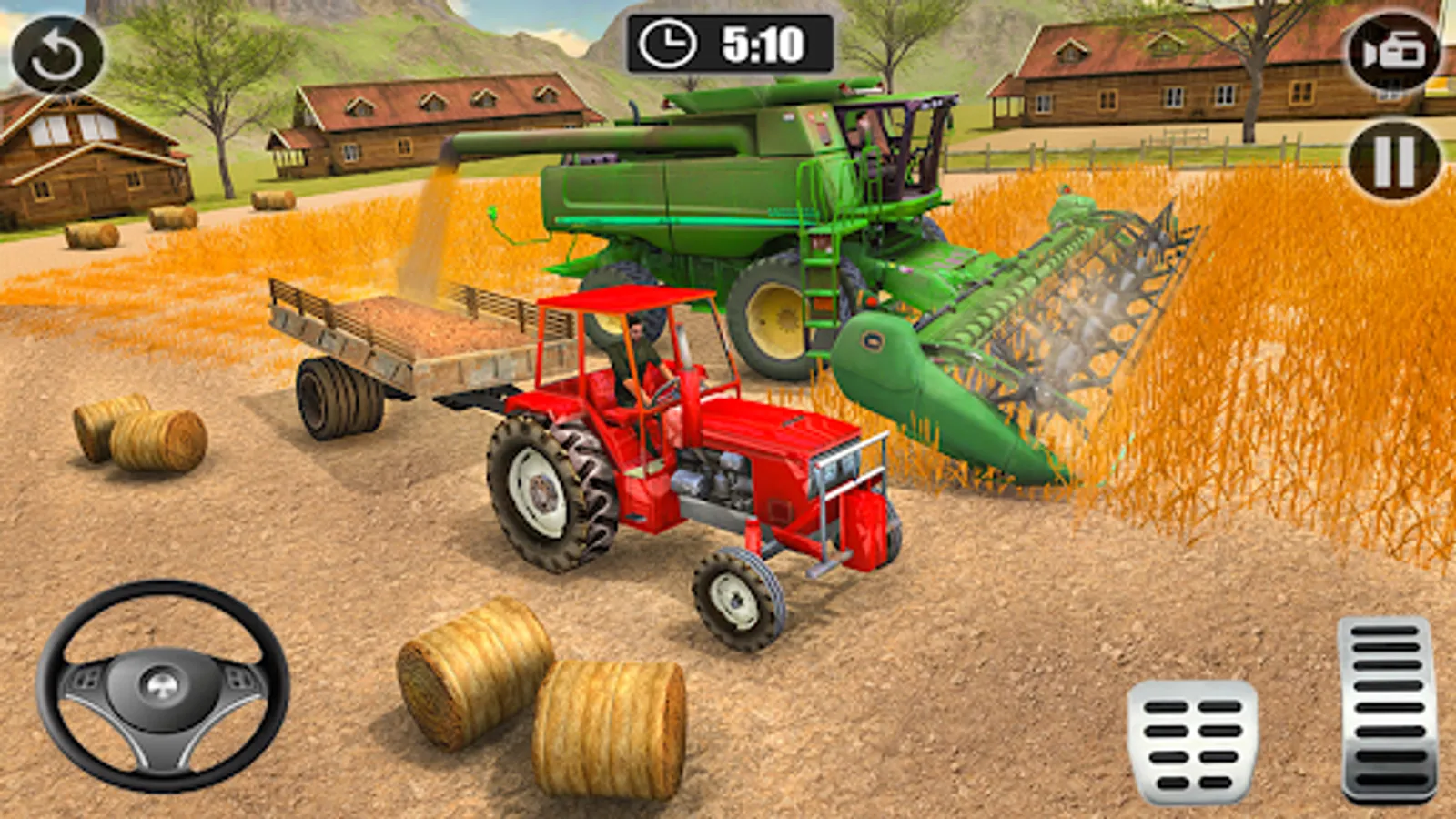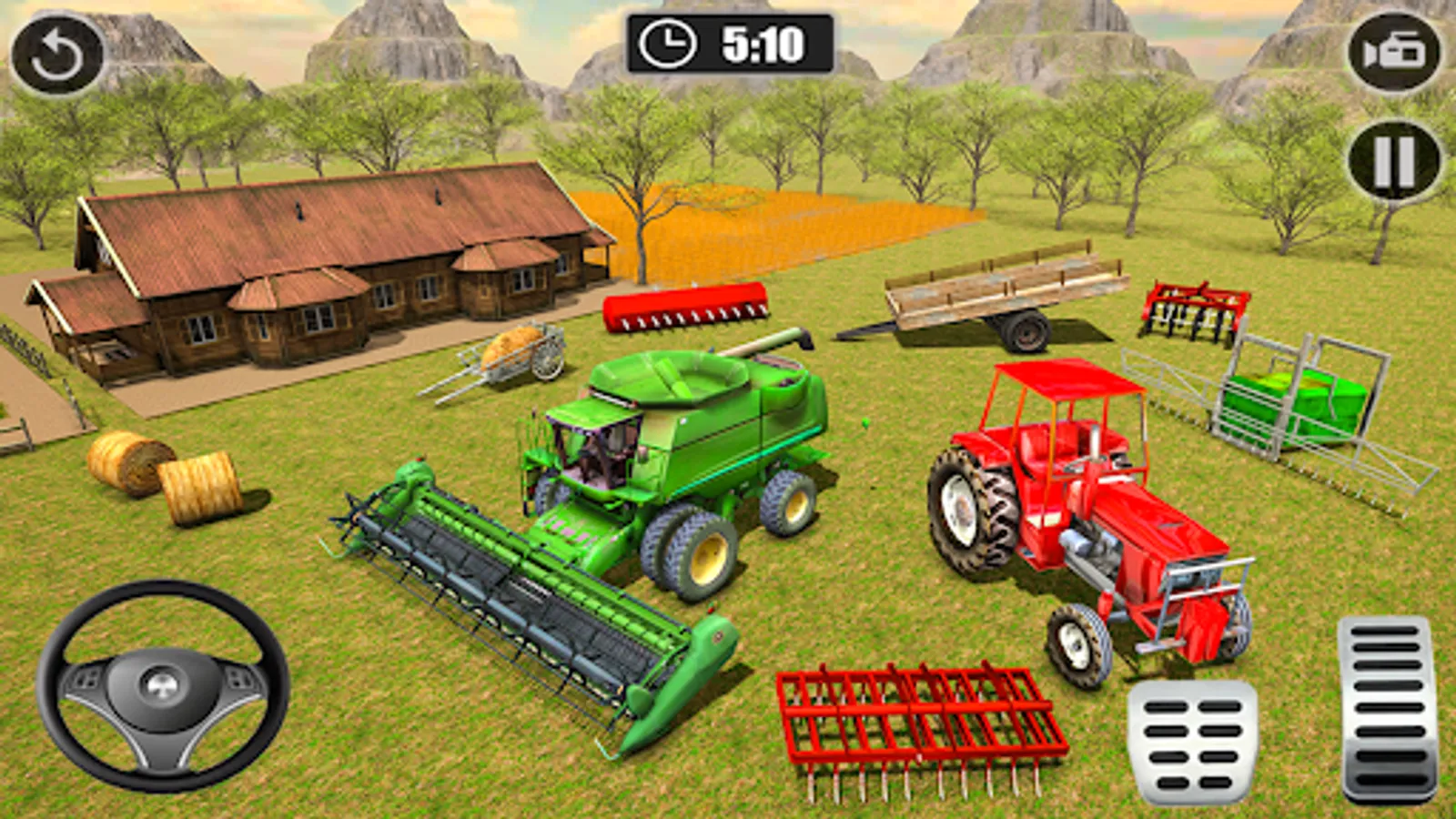 In this new farming SIM game, you have to follow all the steps of real farming like seeding, cultivating, sprayer, and harvesting. Now enjoy the real tractor farming SIM games & mega harvesting game. It's food farming season so it's the perfect time to harvest your crops. Drive-in tractor farming games to the market and sell all your crops. Organics tractor farming games are giving new chances in harvesting crops and enjoy harvesting farms SIM game. Harvest your farmland, use a grain seeding plow planter tools like seed driller, fertiliser spreader, trans-planter, drip irrigation systems, weight sorter, round baler, sprayers, irrigation pumps to aggregate your land. Best game of auto and vehicle in action with the organics tractor farming SIM games & mega harvesting. Farming and harvesting season is on, and so we bring you the new mega harvesting & modern tractor SIM game.