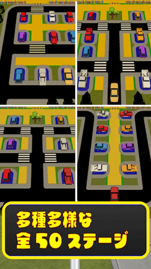 There are a total of 50 stages. As you progress, the number of parking spaces and lane choices increase, making the game more challenging. The people getting out of the cars also come in various shapes, colors, and quantities, adding an element of enjoyment in figuring out how to remember them. Some stages involve guiding people you initially remember, while others challenge you to remember and guide people who change constantly within a one-minute timeframe. It's not always straightforward.