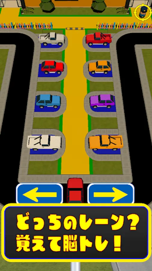 This game is a 3D parking lot guide memory training game (free) where you remember people getting out of cars and guide the next car to the departing parking spot. Choose the correct lane to guide the next car and aim to clear each stage! Stage completion relies on your memory, providing brain training to sharpen your memory skills. When you give correct guidance, you receive expressions of gratitude like "Thank you."