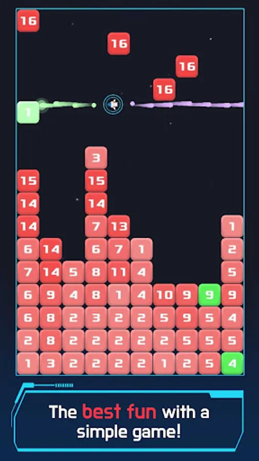 ▶ Invaders are represented by blocks, and the number written on the block is the enemy's health. Destroy the blocks as quickly as possible while avoiding collisions with enemies!