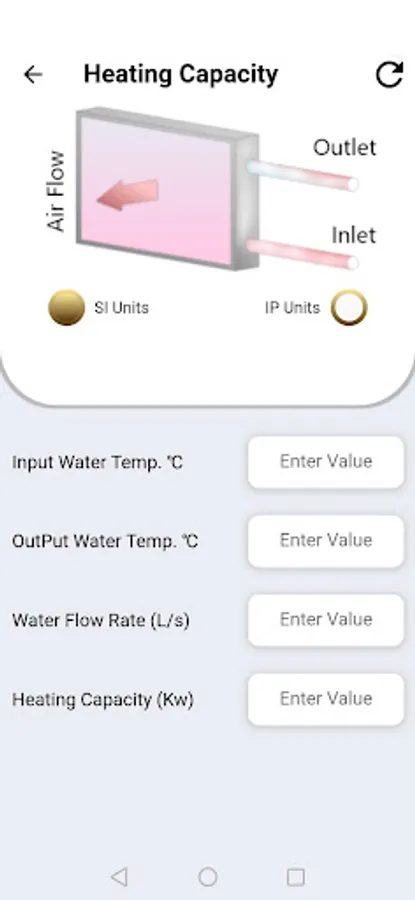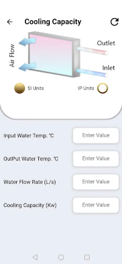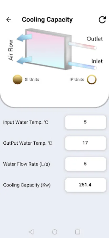 Cooling Capacity tool will do the calculation for you for any input values are available for you…for example it can calculate the cooling load capacity if you have (inlet temperature, outlet temperature, & water Flow), also it can calculate water Flow if you have (inlet temperature, outlet temperature, & cooling capacity)… and so on.