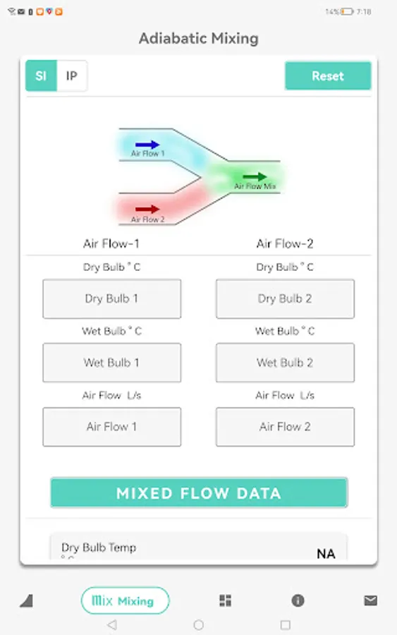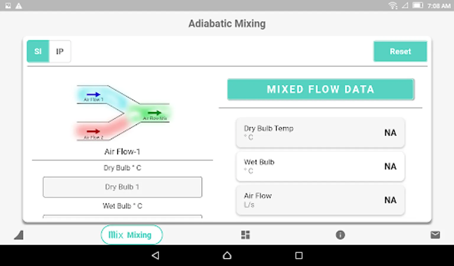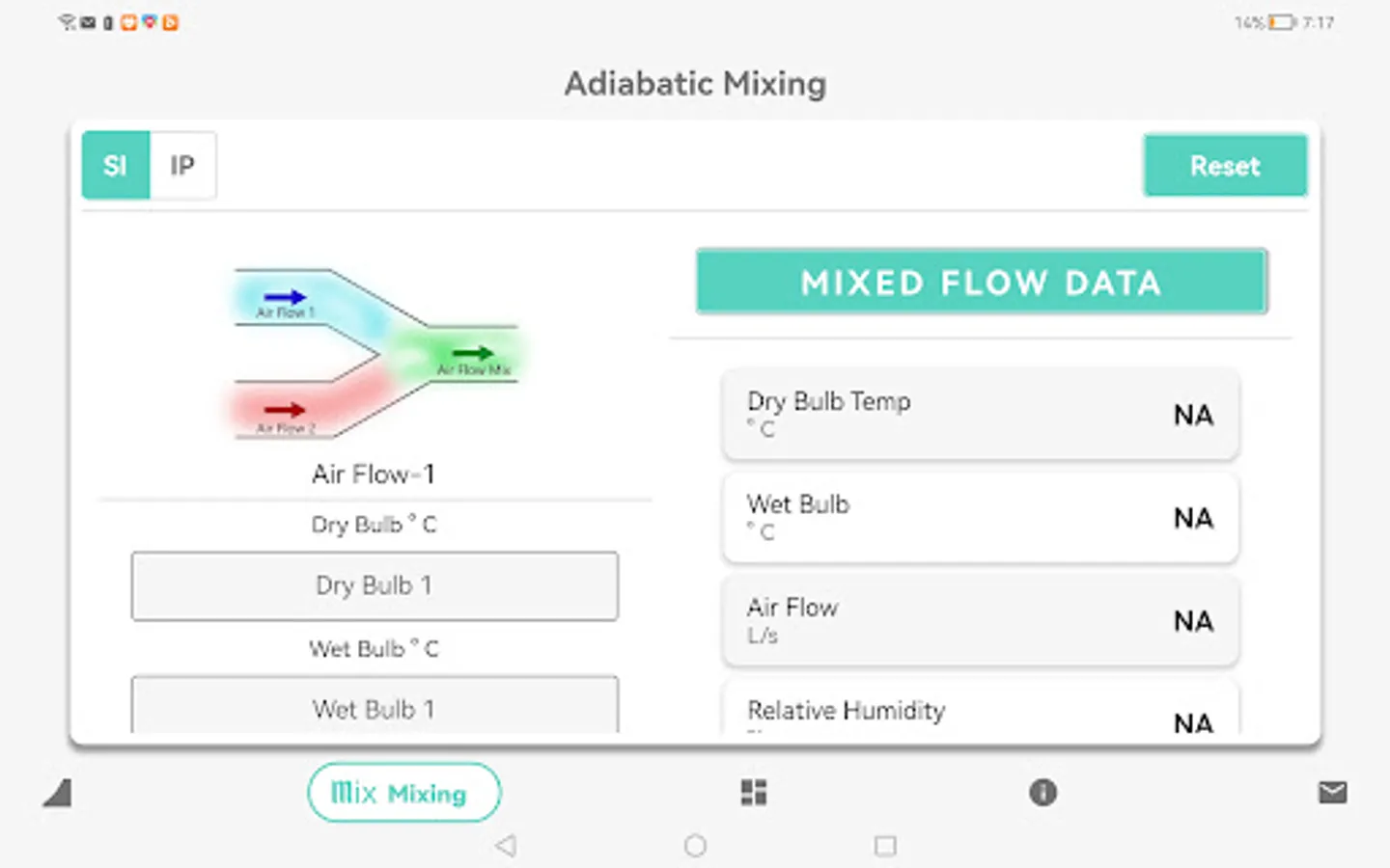 Psychrometric Lite will allow the user to calculated the adiabatic mixing air properties easily.