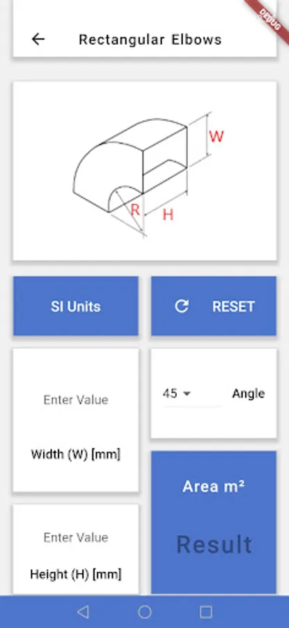 Duct fittings Surface Area Calculator is a very useful App for mechanical engineers, site supervisors, store keepers… as fact when the ducts are delivered to any construction site the fabricated ducts & fittings surface area will be attached to the delivery note, therefore the storekeeper, site supervisor, or the engineer have to re-check the surface area again to verify the delivery for payment issues….