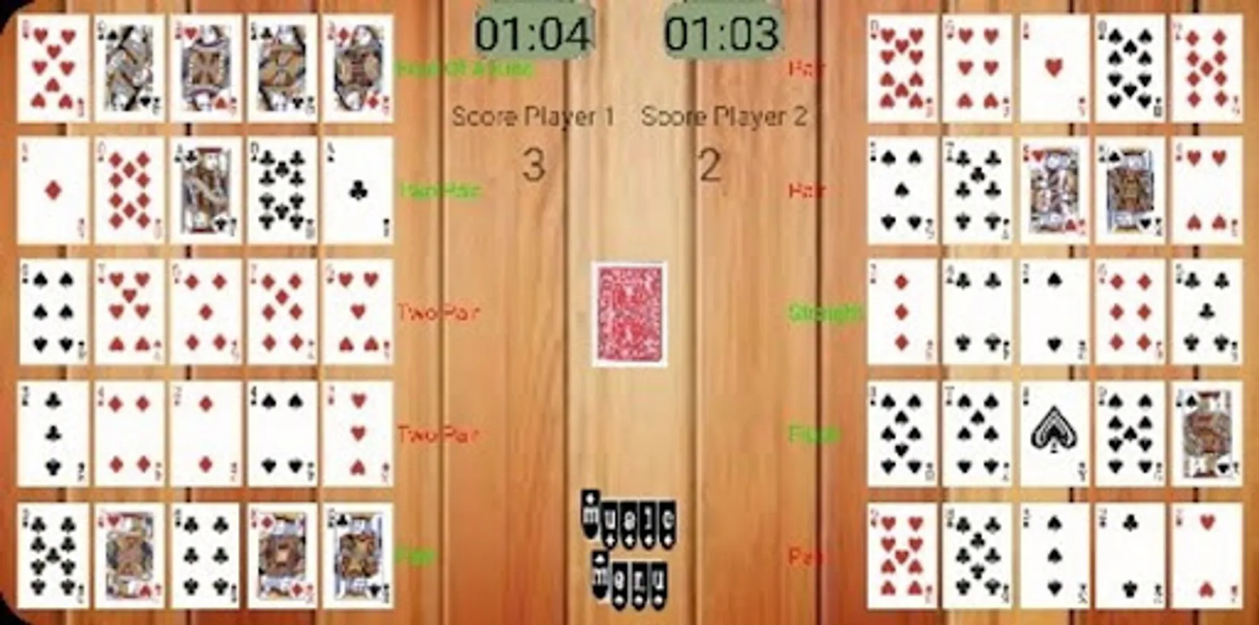מהלך המשחק: המשחק מתחיל כאשר לכל משתתף יש חמישה קלפים פתוחים המסודרים בשורה אחת כאשר כל קלף הוא ראש טור קלפים. כל משתתף בתורו לוחץ על הקופה, מקבל קלף בצד שלו וממקם אותו באחד הטורים של הקלפים. לבסוף לכל משתתף יהיו חמישה טורים שבכל טור חמישה קלפים. משתתף ירוויח נקודה כאשר בסיום המשחק ערך היד בטור שלו גדול מערך היד שבטור הנגדי לו של השחקן השני, כלומר מקסימום הנקודות שאפשר להרוויח הוא חמש נקודות.