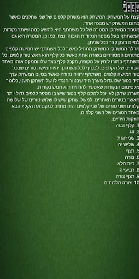 קצת על המשחק: המשחק הוא משחק קלפים של שני שחקנים כאשר בתום המשחק יש מנצח אחד.