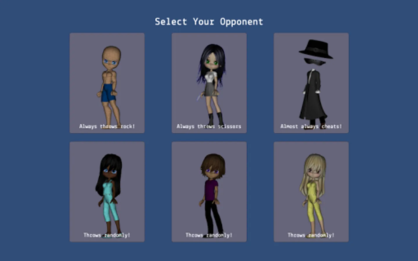 - one opponent always chooses rock