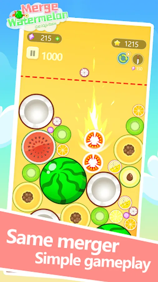 At the beginning of the game, you will see a small fruit that you need to constantly click or touch the screen to merge two fruits of the same size, in order to make larger fruits appear. Each successful merge will increase the size and score of the fruit.